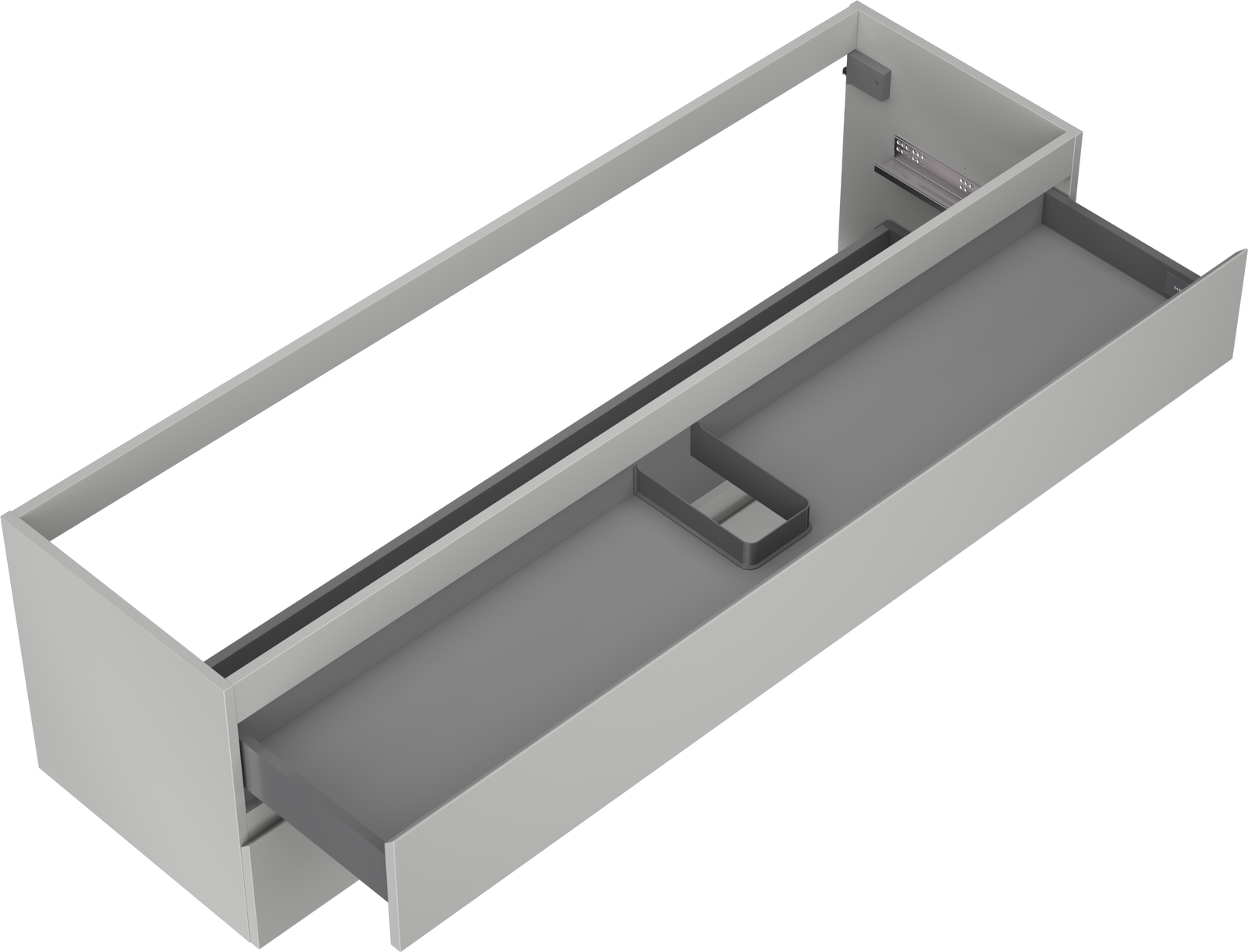 La découpe dans le tiroir est conçue de manière à accueillir le siphon, qui est nécessaire dans les installations de lavabo. Ainsi, le meuble peut être installé de manière pleinement fonctionnelle, sans devoir renoncer à l'espace du tiroir au profit de l'installation.
