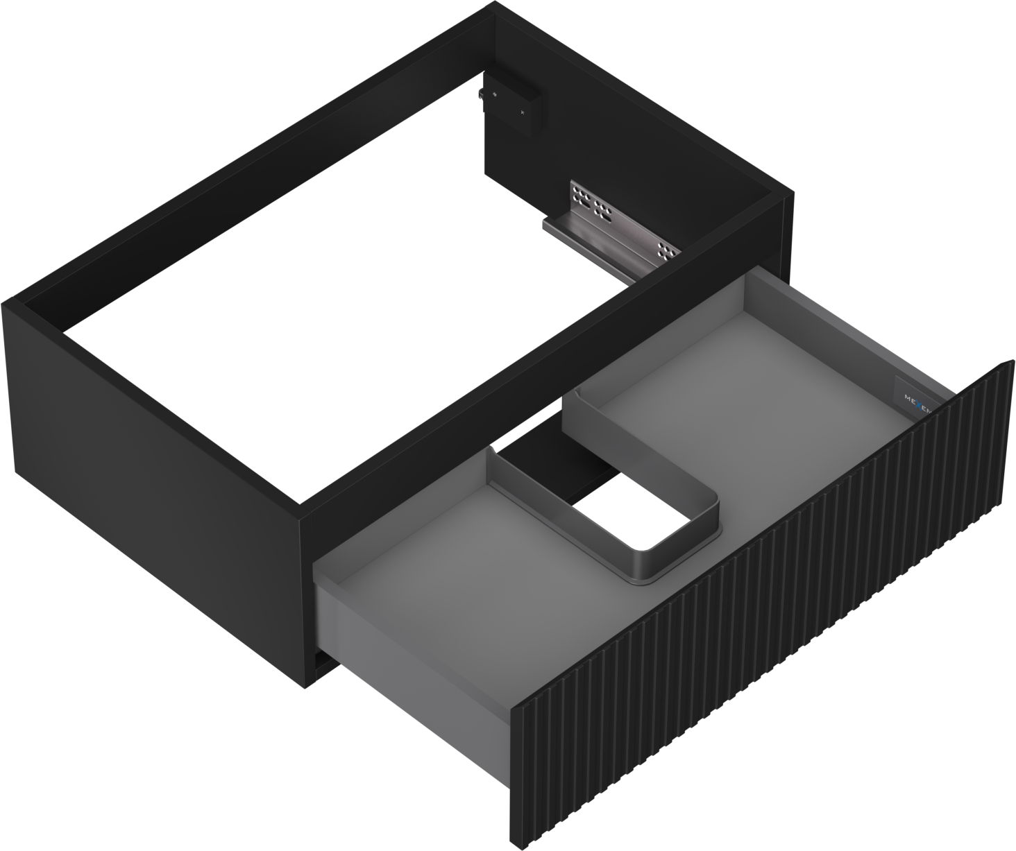 La découpe dans le tiroir est conçue de manière à accueillir le siphon, qui est nécessaire dans les installations de lavabo. Ainsi, le meuble peut être installé de manière pleinement fonctionnelle, sans devoir renoncer à l'espace du tiroir au profit de l'installation.