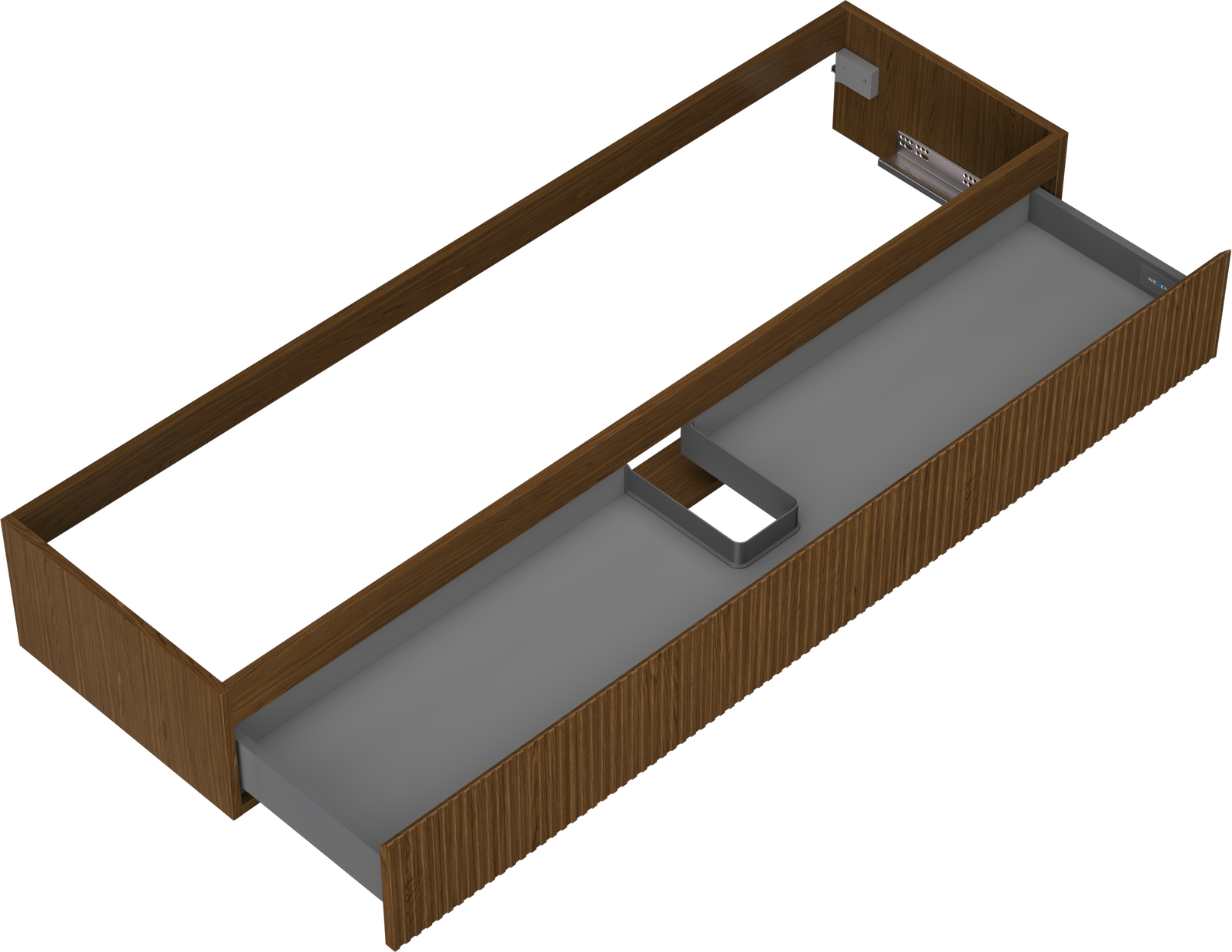 La découpe dans le tiroir est conçue de manière à accueillir le siphon, qui est nécessaire dans les installations de lavabo. Ainsi, le meuble peut être installé de manière pleinement fonctionnelle, sans devoir renoncer à l'espace du tiroir au profit de l'installation.