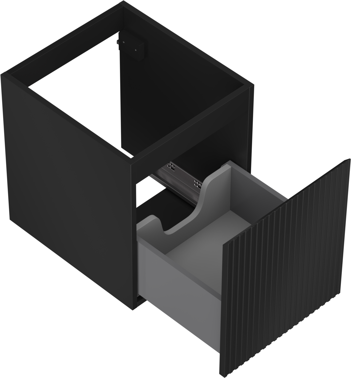 La découpe dans le tiroir est conçue de manière à accueillir le siphon, qui est nécessaire dans les installations de lavabo. Ainsi, le meuble peut être installé de manière pleinement fonctionnelle, sans devoir renoncer à l'espace du tiroir au profit de l'installation.
