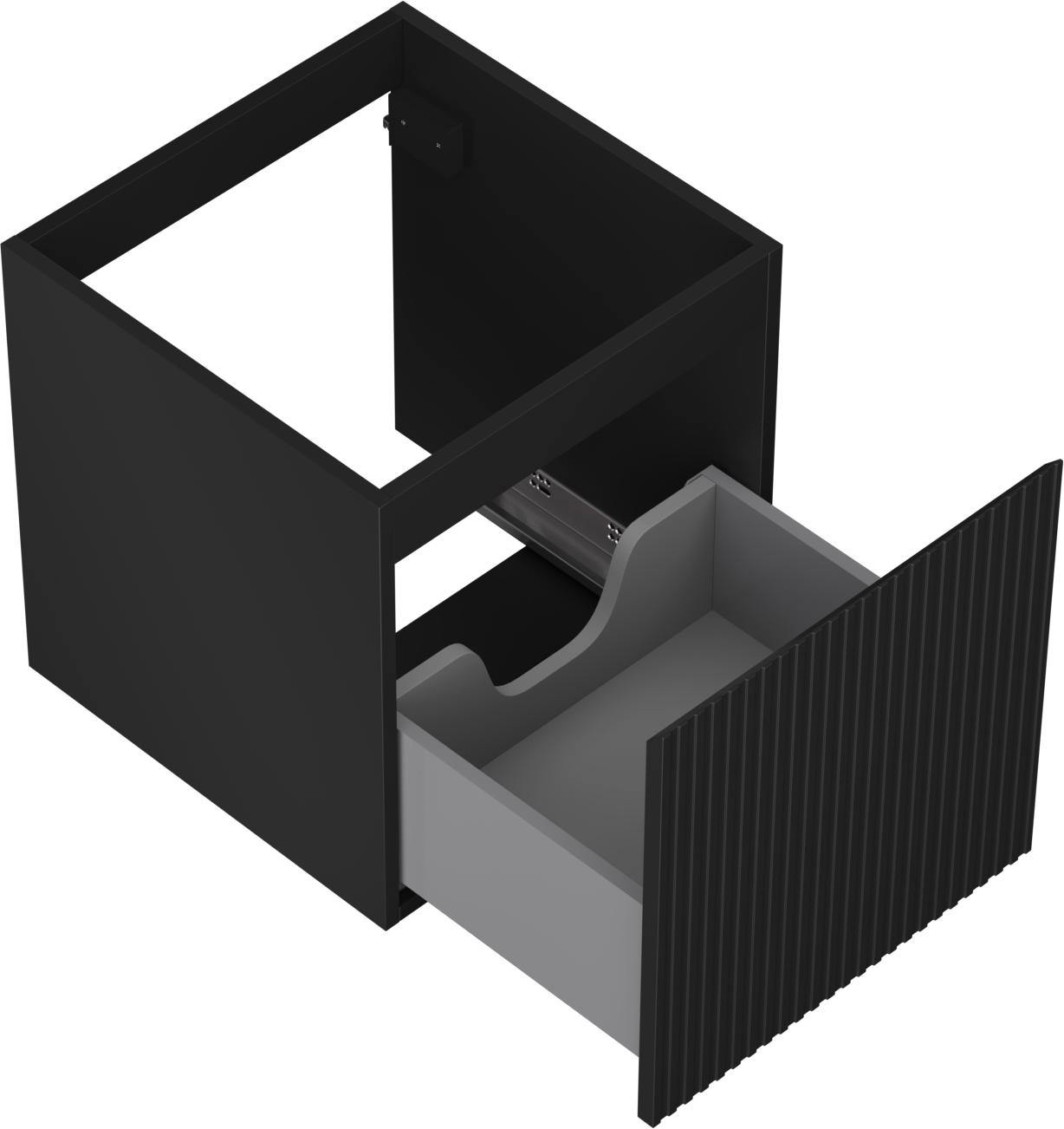 La découpe dans le tiroir est conçue de manière à accueillir le siphon, qui est nécessaire dans les installations de lavabo. Ainsi, le meuble peut être installé de manière pleinement fonctionnelle, sans devoir renoncer à l'espace du tiroir au profit de l'installation.