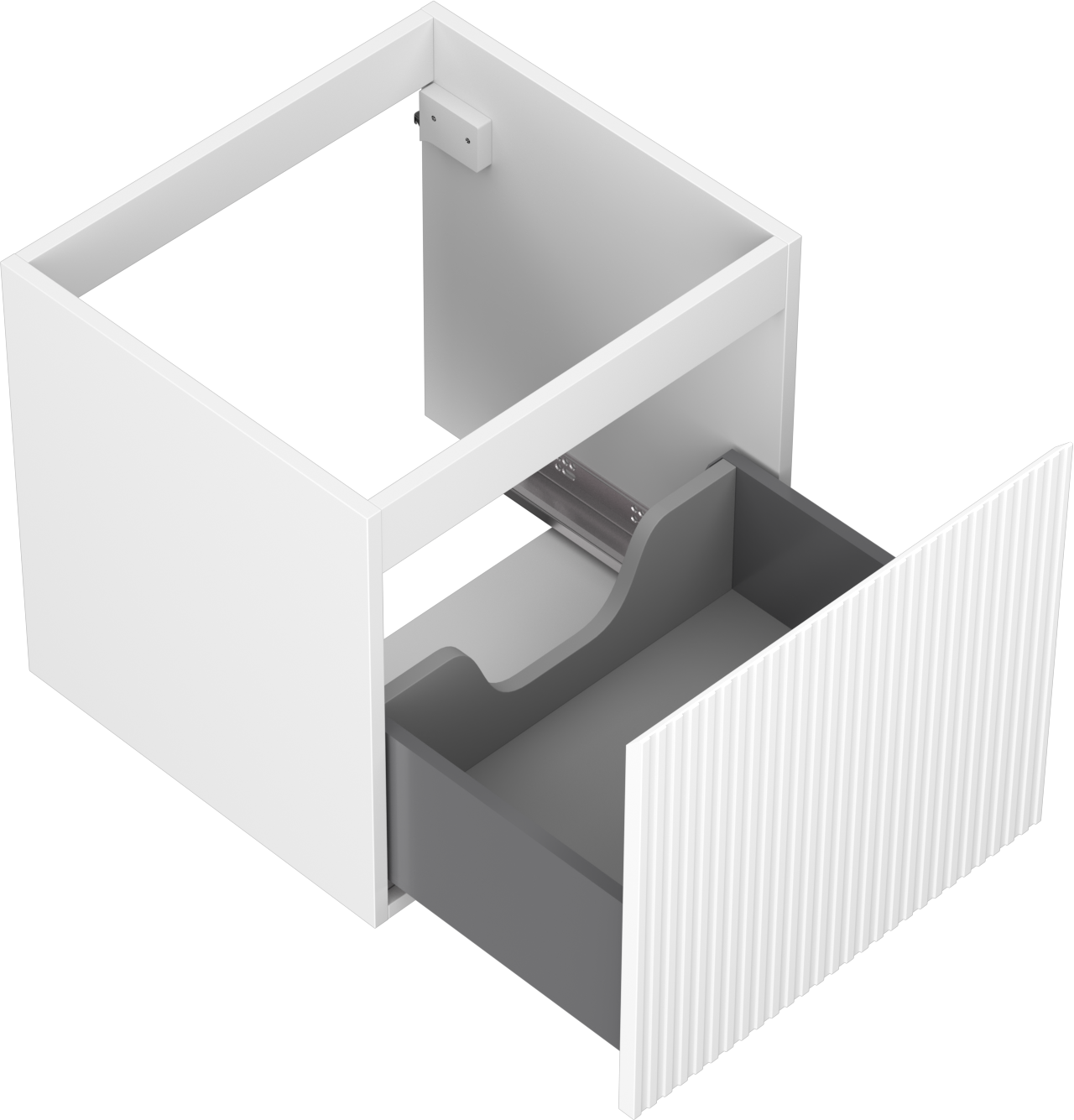 La découpe dans le tiroir est conçue de manière à accueillir le siphon, qui est nécessaire dans les installations de lavabo. Ainsi, le meuble peut être installé de manière pleinement fonctionnelle, sans devoir renoncer à l'espace du tiroir au profit de l'installation.