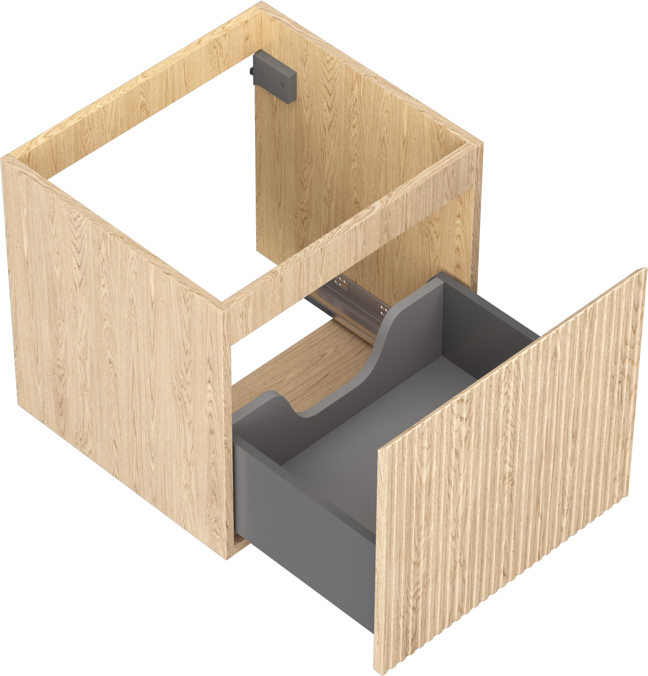 La découpe dans le tiroir est conçue de manière à accueillir le siphon, qui est nécessaire dans les installations de lavabo. Ainsi, le meuble peut être installé de manière pleinement fonctionnelle, sans devoir renoncer à l'espace du tiroir au profit de l'installation.