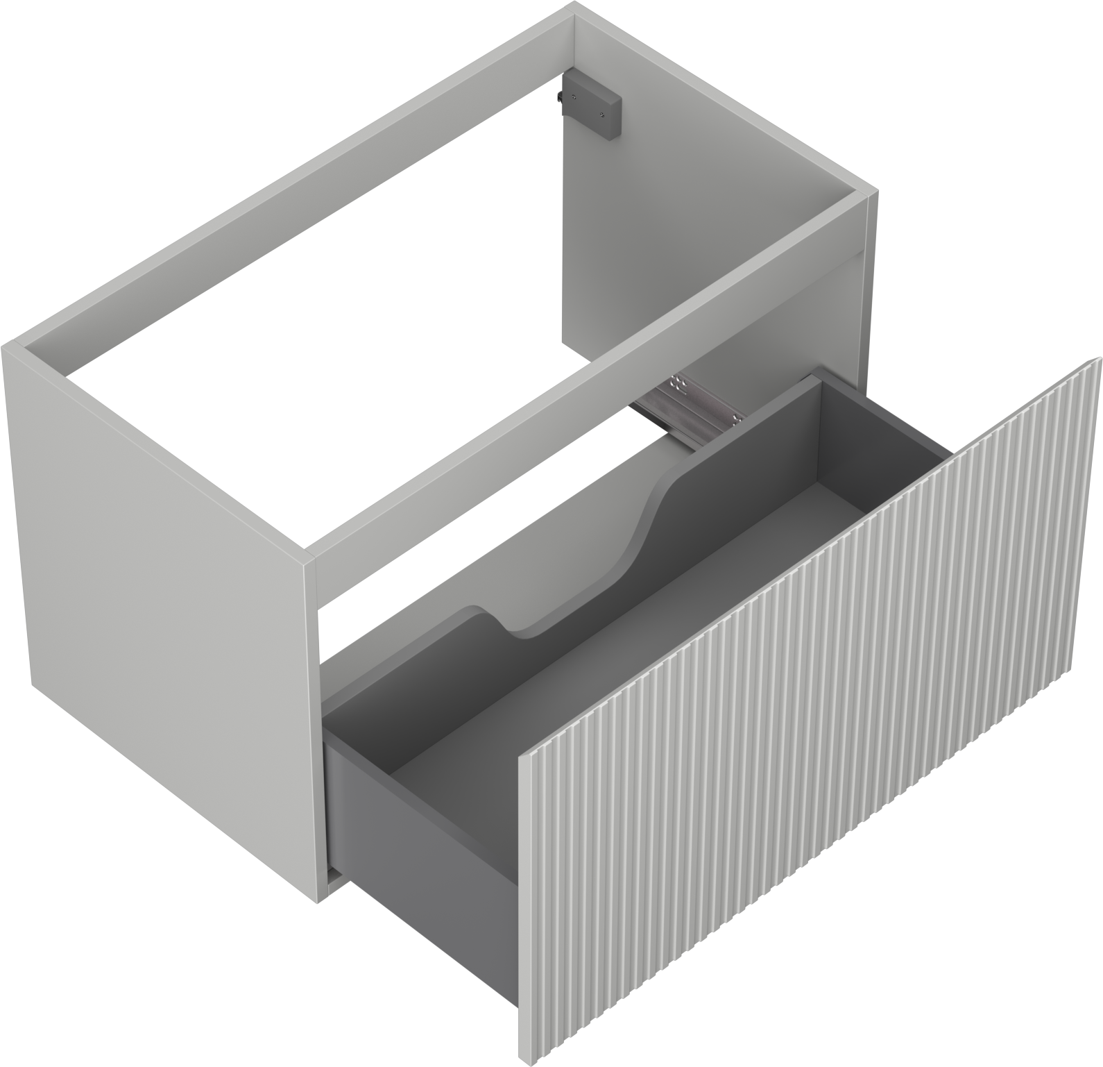 La découpe dans le tiroir est conçue de manière à accueillir le siphon, qui est nécessaire dans les installations de lavabo. Ainsi, le meuble peut être installé de manière pleinement fonctionnelle, sans devoir renoncer à l'espace du tiroir au profit de l'installation.