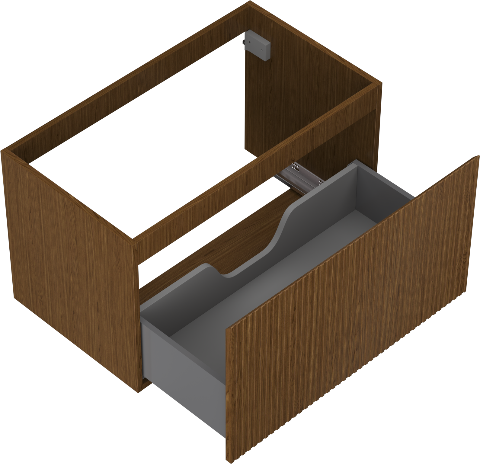 La découpe dans le tiroir est conçue de manière à accueillir le siphon, qui est nécessaire dans les installations de lavabo. Ainsi, le meuble peut être installé de manière pleinement fonctionnelle, sans devoir renoncer à l'espace du tiroir au profit de l'installation.