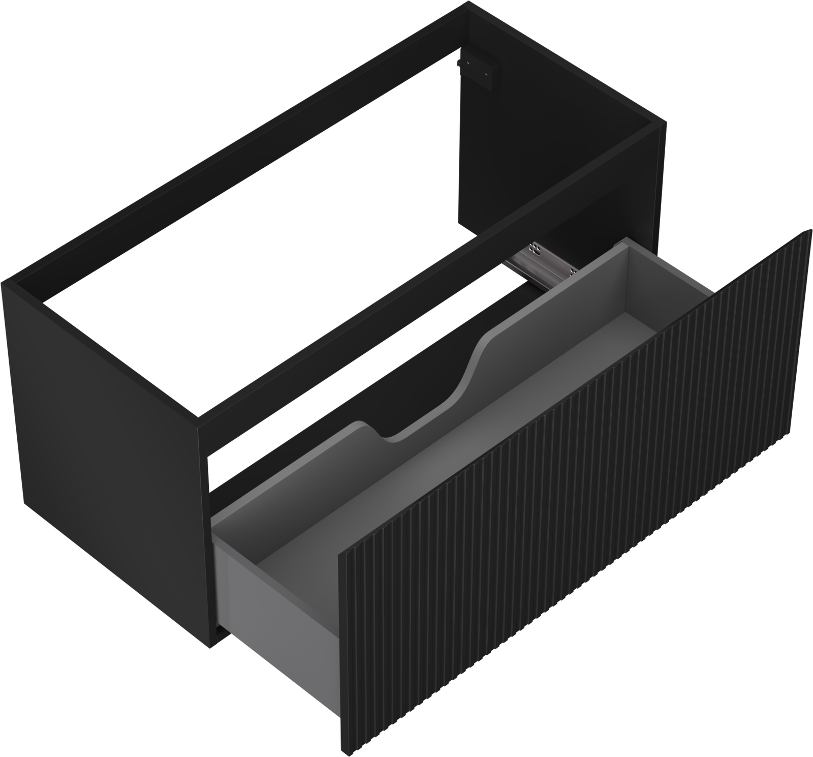 La découpe dans le tiroir est conçue de manière à accueillir le siphon, qui est nécessaire dans les installations de lavabo. Ainsi, le meuble peut être installé de manière pleinement fonctionnelle, sans devoir renoncer à l'espace du tiroir au profit de l'installation.
