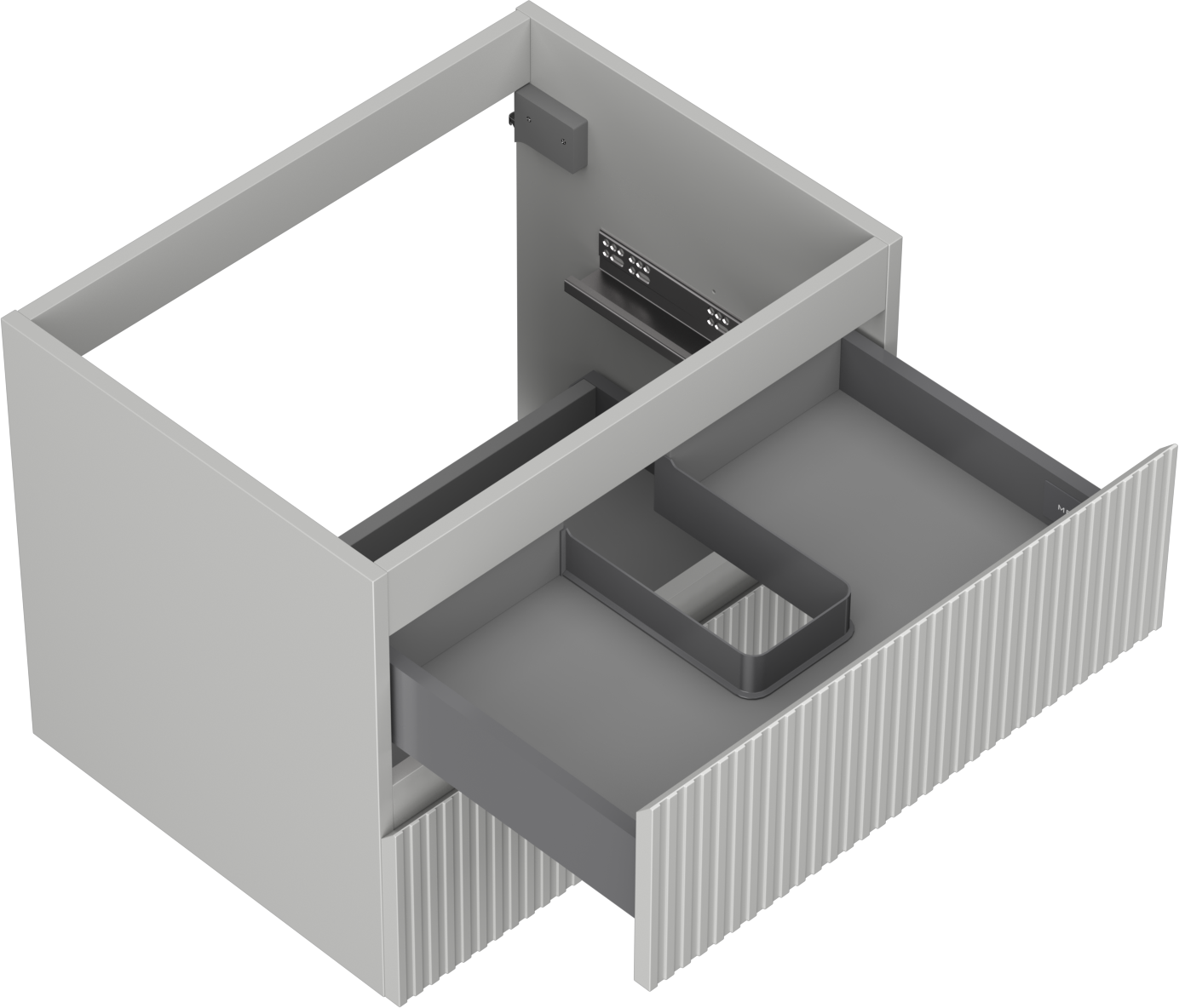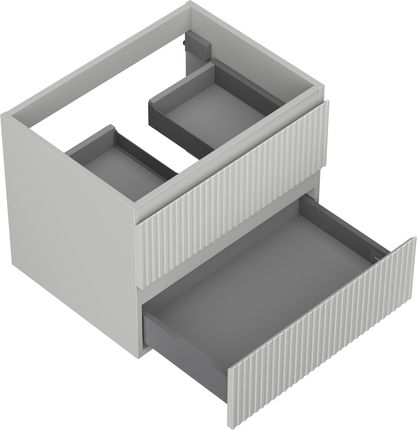 La découpe dans le tiroir est conçue de manière à accueillir le siphon, qui est nécessaire dans les installations de lavabo. Ainsi, le meuble peut être installé de manière pleinement fonctionnelle, sans devoir renoncer à l'espace du tiroir au profit de l'installation.