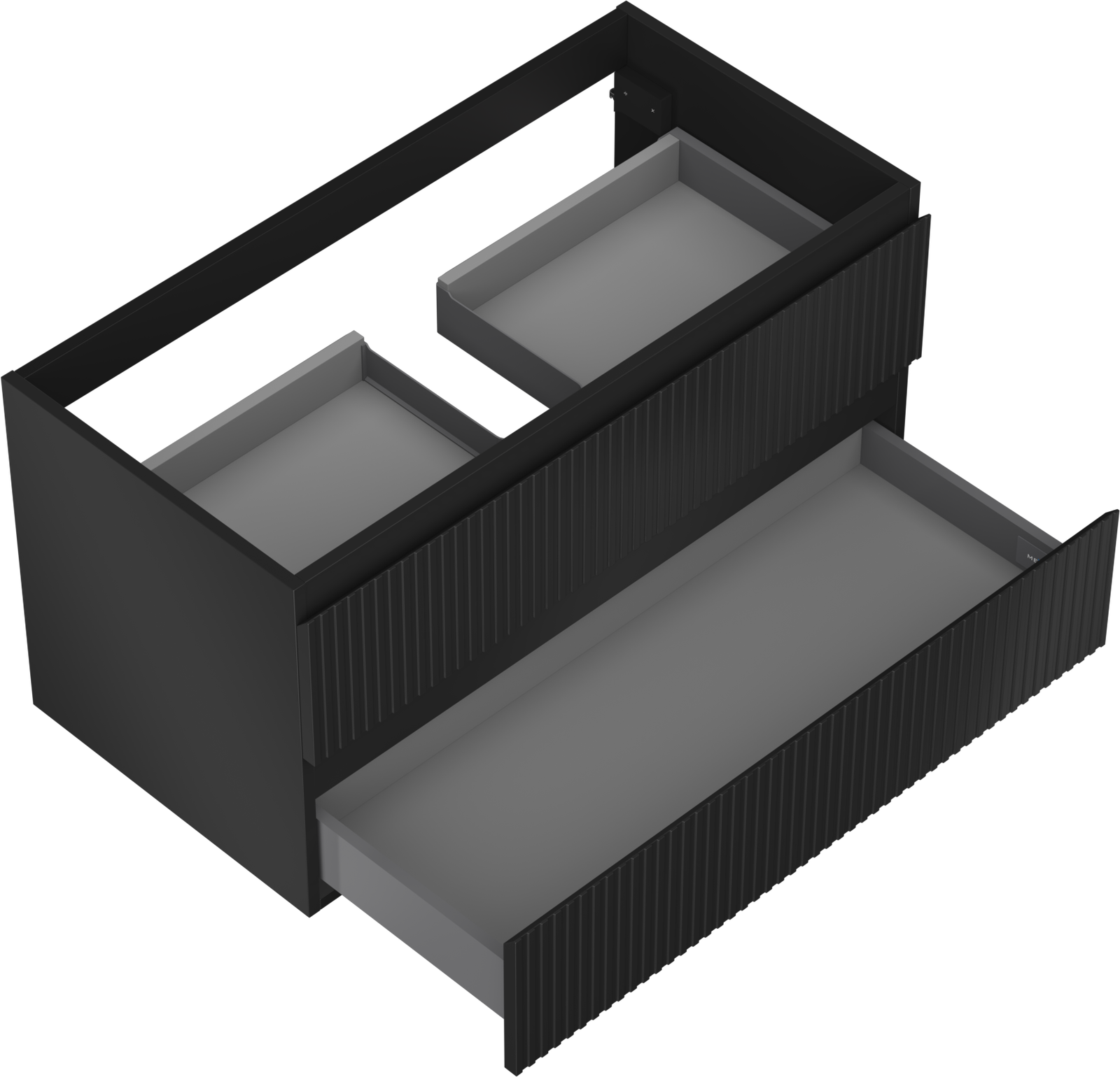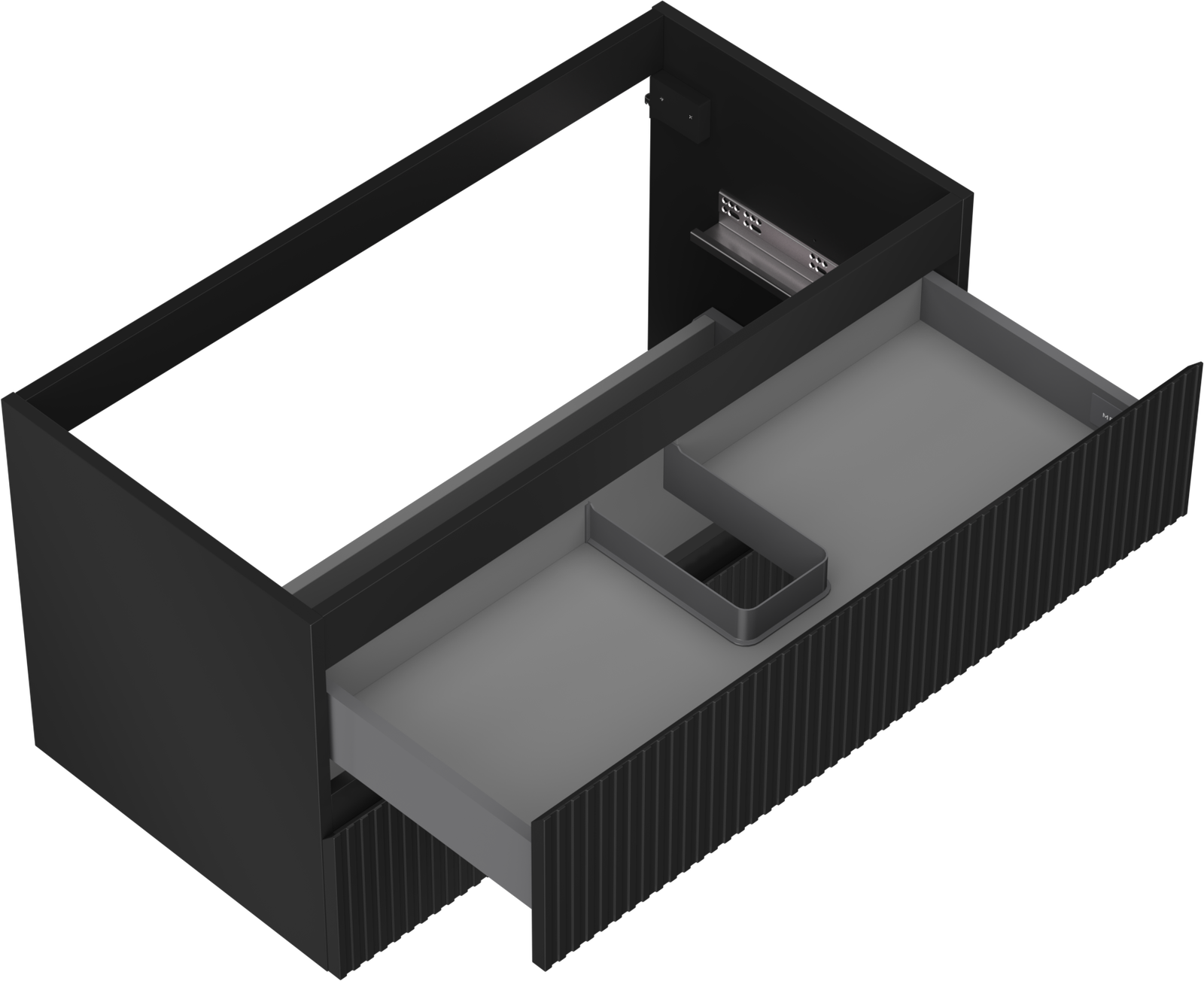 La découpe dans le tiroir est conçue de manière à accueillir le siphon, qui est nécessaire dans les installations de lavabo. Ainsi, le meuble peut être installé de manière pleinement fonctionnelle, sans devoir renoncer à l'espace du tiroir au profit de l'installation.