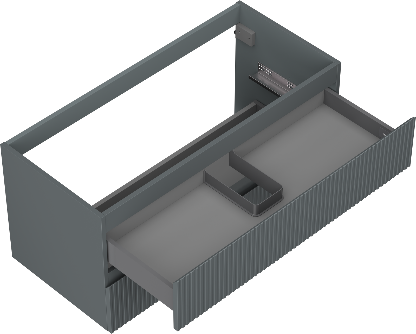 La découpe dans le tiroir est conçue de manière à accueillir le siphon, qui est nécessaire dans les installations de lavabo. Ainsi, le meuble peut être installé de manière pleinement fonctionnelle, sans devoir renoncer à l'espace du tiroir au profit de l'installation.