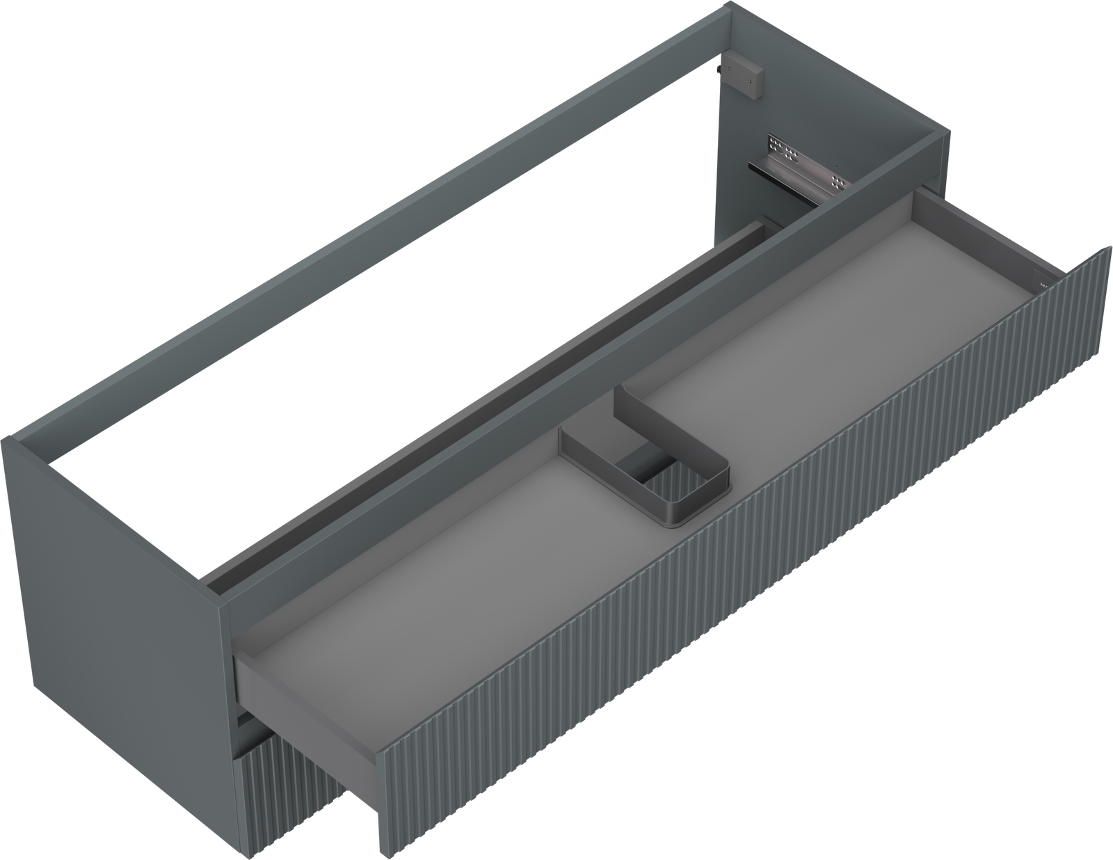 La découpe dans le tiroir est conçue de manière à accueillir le siphon, qui est nécessaire dans les installations de lavabo. Ainsi, le meuble peut être installé de manière pleinement fonctionnelle, sans devoir renoncer à l'espace du tiroir au profit de l'installation.
