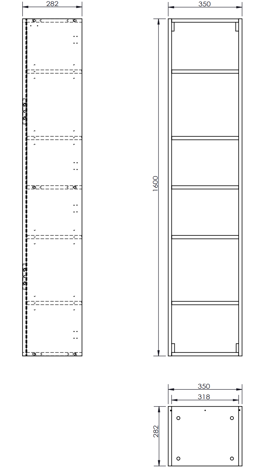 5 étagères (1 étagère centrale fixe et 4 étagères à réglage possible)
