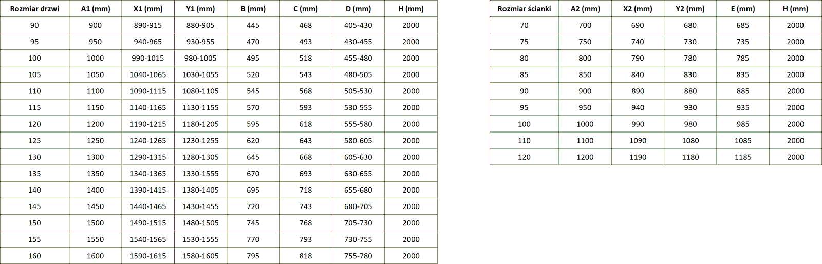 Taille: 105x95 cm (porte gauche 105 cm, paroi 95 cm)