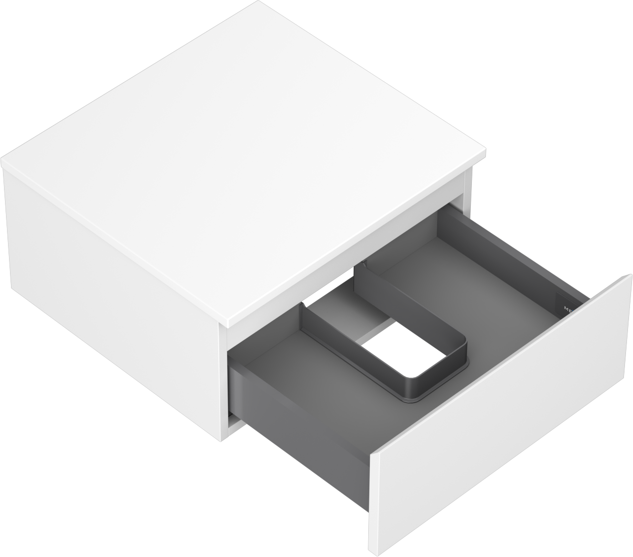 La découpe dans le tiroir est conçue de manière à accueillir le siphon, qui est nécessaire dans les installations de lavabo. Ainsi, le meuble peut être installé de manière pleinement fonctionnelle, sans devoir renoncer à l'espace du tiroir au profit de l'installation.
