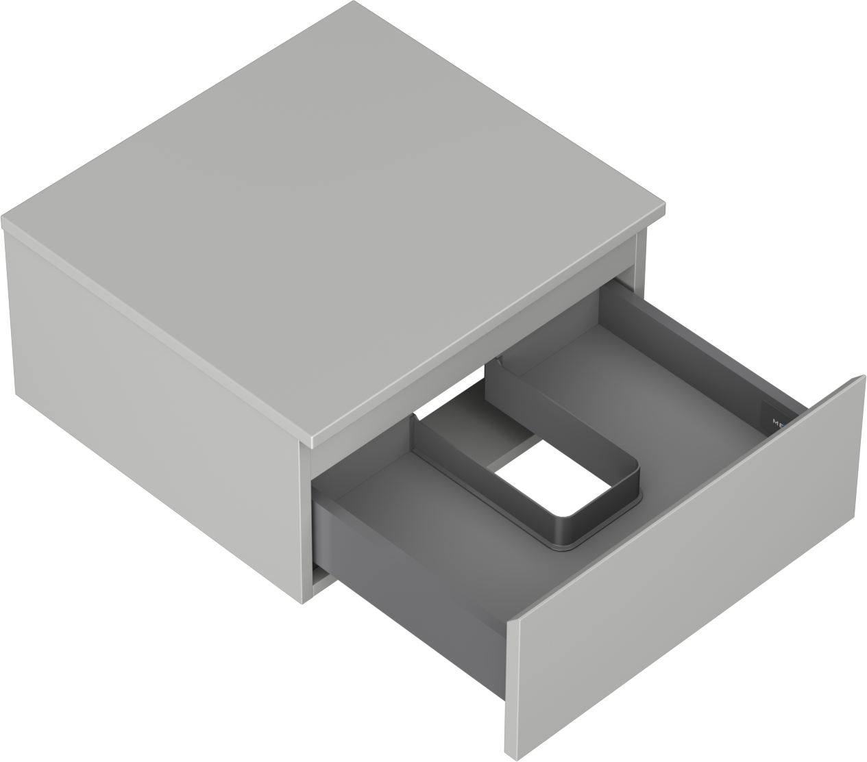 La découpe dans le tiroir est conçue de manière à accueillir le siphon, qui est nécessaire dans les installations de lavabo. Ainsi, le meuble peut être installé de manière pleinement fonctionnelle, sans devoir renoncer à l'espace du tiroir au profit de l'installation.