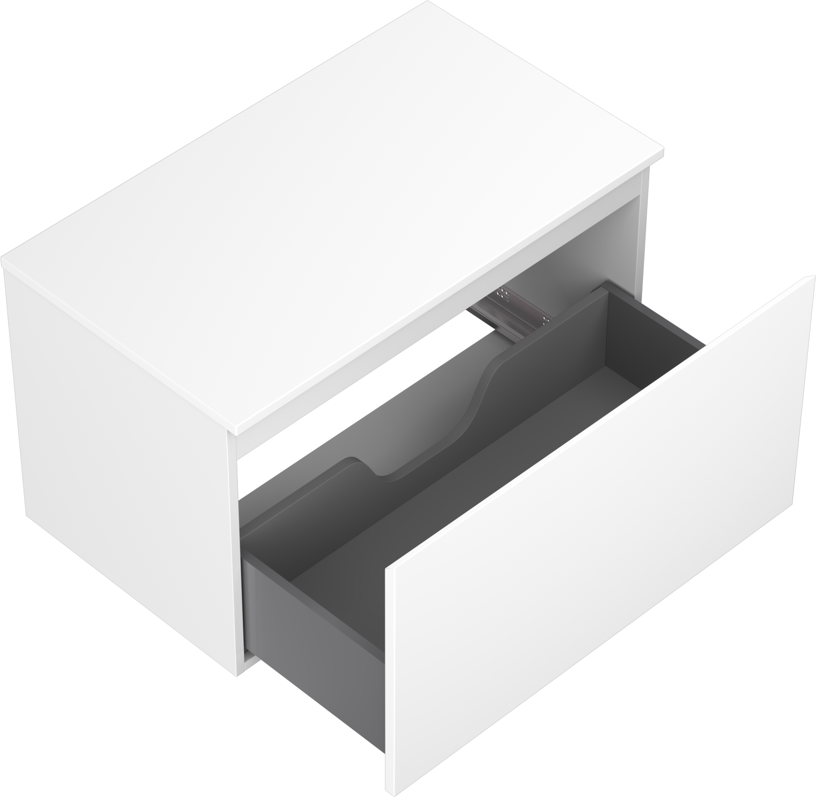 La découpe dans le tiroir est conçue de manière à accueillir le siphon, qui est nécessaire dans les installations de lavabo. Ainsi, le meuble peut être installé de manière pleinement fonctionnelle, sans devoir renoncer à l'espace du tiroir au profit de l'installation.