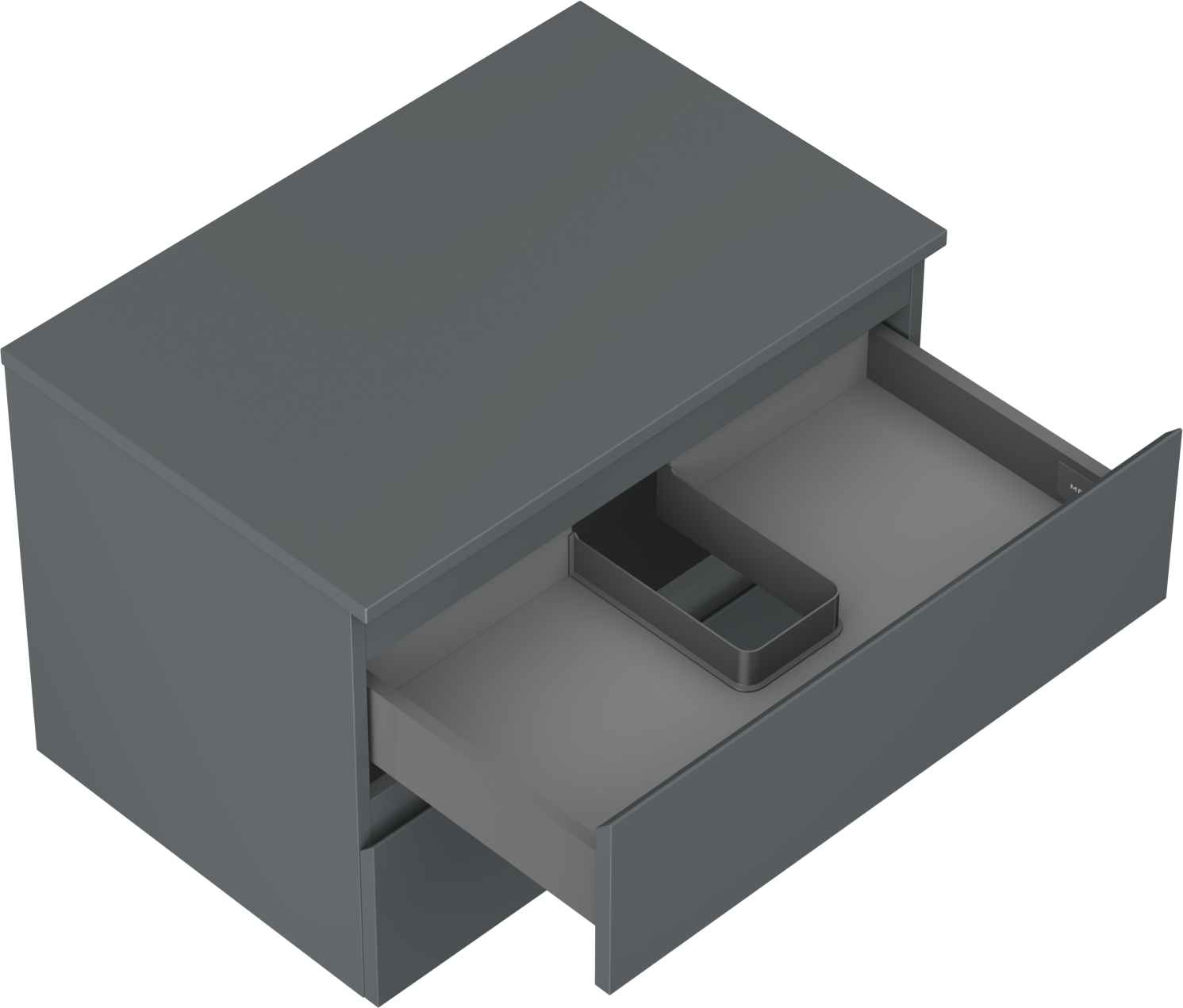 La découpe dans le tiroir est conçue de manière à accueillir le siphon, qui est nécessaire dans les installations de lavabo. Ainsi, le meuble peut être installé de manière pleinement fonctionnelle, sans devoir renoncer à l'espace du tiroir au profit de l'installation.