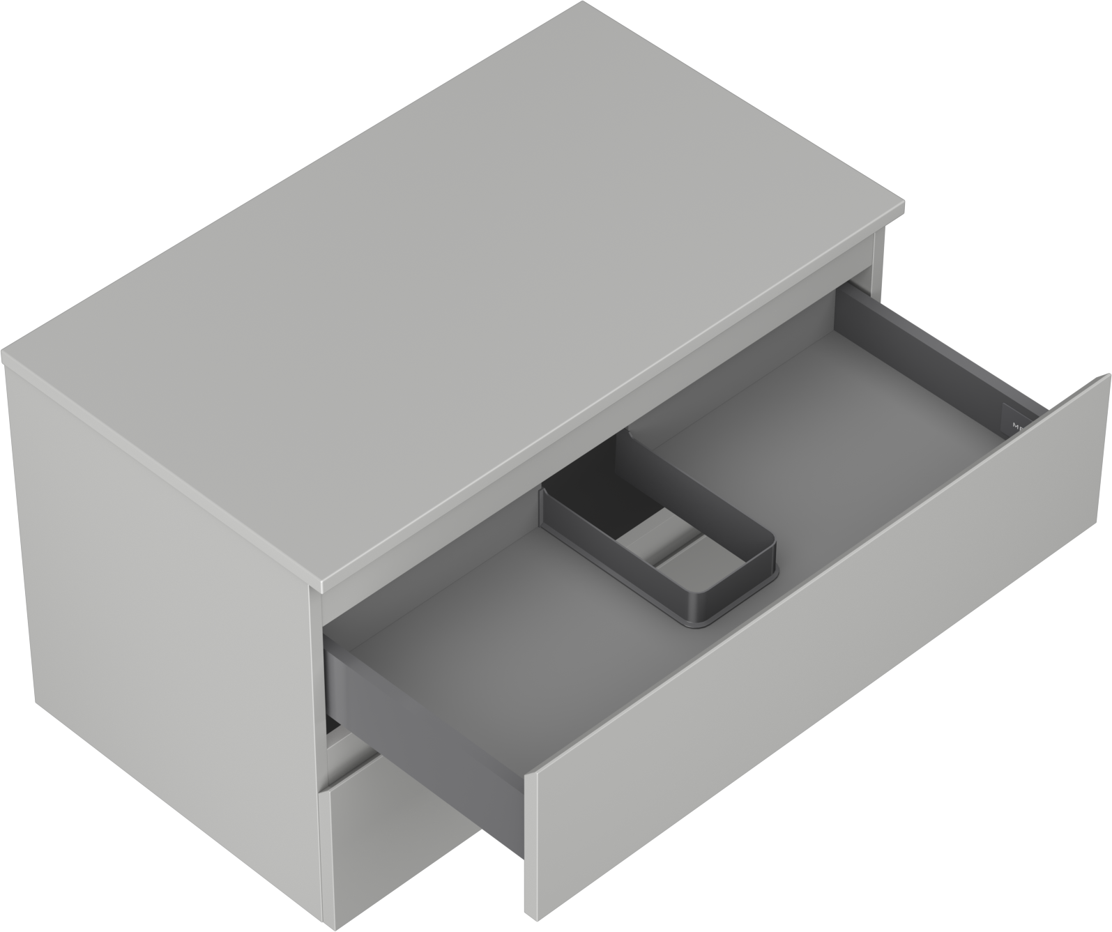 La découpe dans le tiroir est conçue de manière à accueillir le siphon, qui est nécessaire dans les installations de lavabo. Ainsi, le meuble peut être installé de manière pleinement fonctionnelle, sans devoir renoncer à l'espace du tiroir au profit de l'installation.
