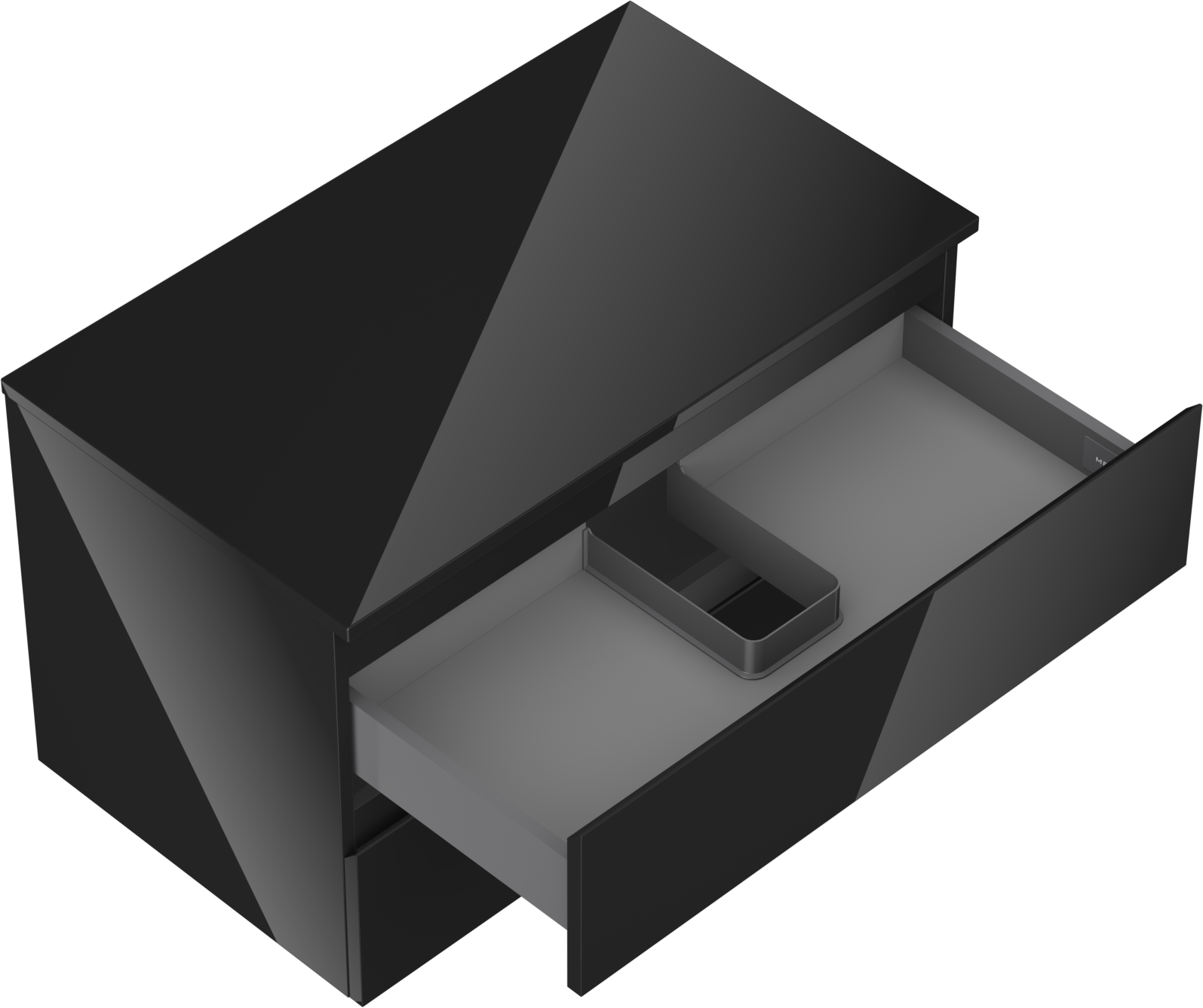 La découpe dans le tiroir est conçue de manière à accueillir le siphon, qui est nécessaire dans les installations de lavabo. Ainsi, le meuble peut être installé de manière pleinement fonctionnelle, sans devoir renoncer à l'espace du tiroir au profit de l'installation.