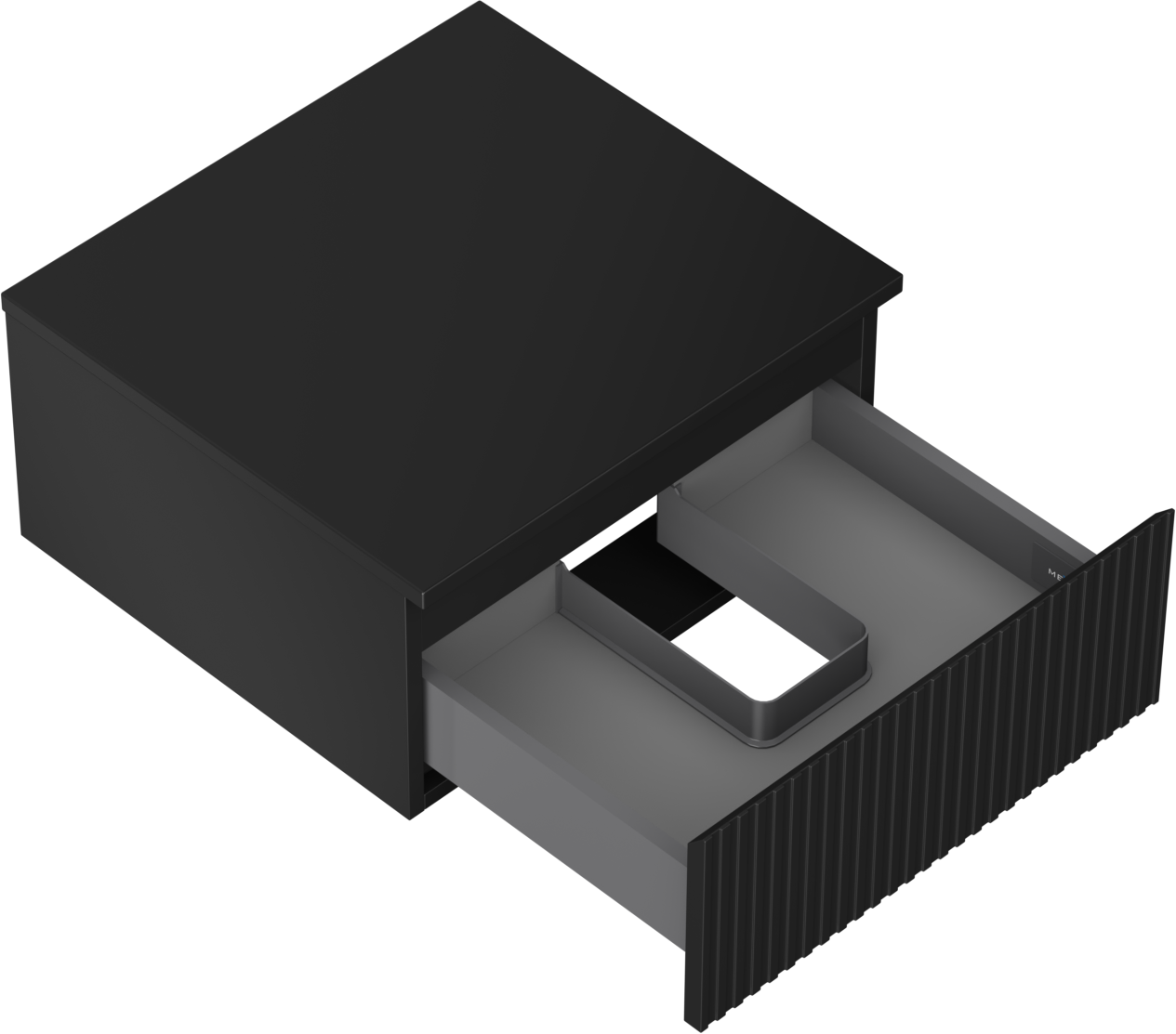 La découpe dans le tiroir est conçue de manière à accueillir le siphon, qui est nécessaire dans les installations de lavabo. Ainsi, le meuble peut être installé de manière pleinement fonctionnelle, sans devoir renoncer à l'espace du tiroir au profit de l'installation.