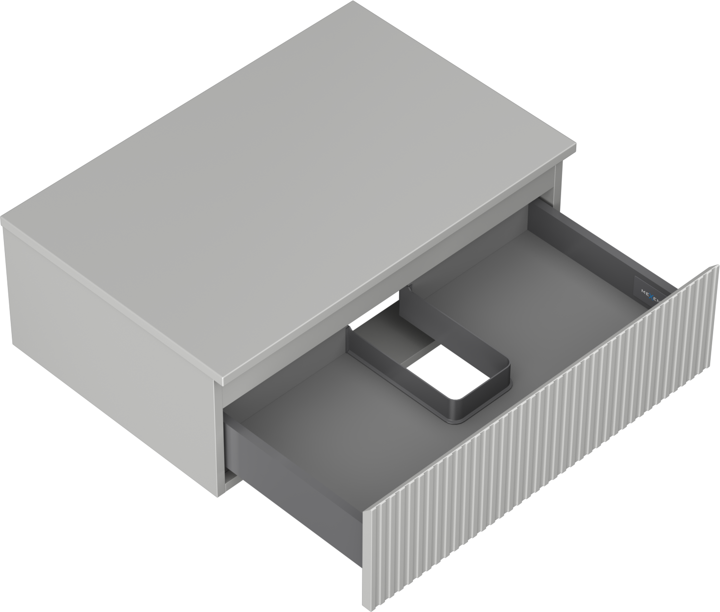 La découpe dans le tiroir est conçue de manière à accueillir le siphon, qui est nécessaire dans les installations de lavabo. Ainsi, le meuble peut être installé de manière pleinement fonctionnelle, sans devoir renoncer à l'espace du tiroir au profit de l'installation.