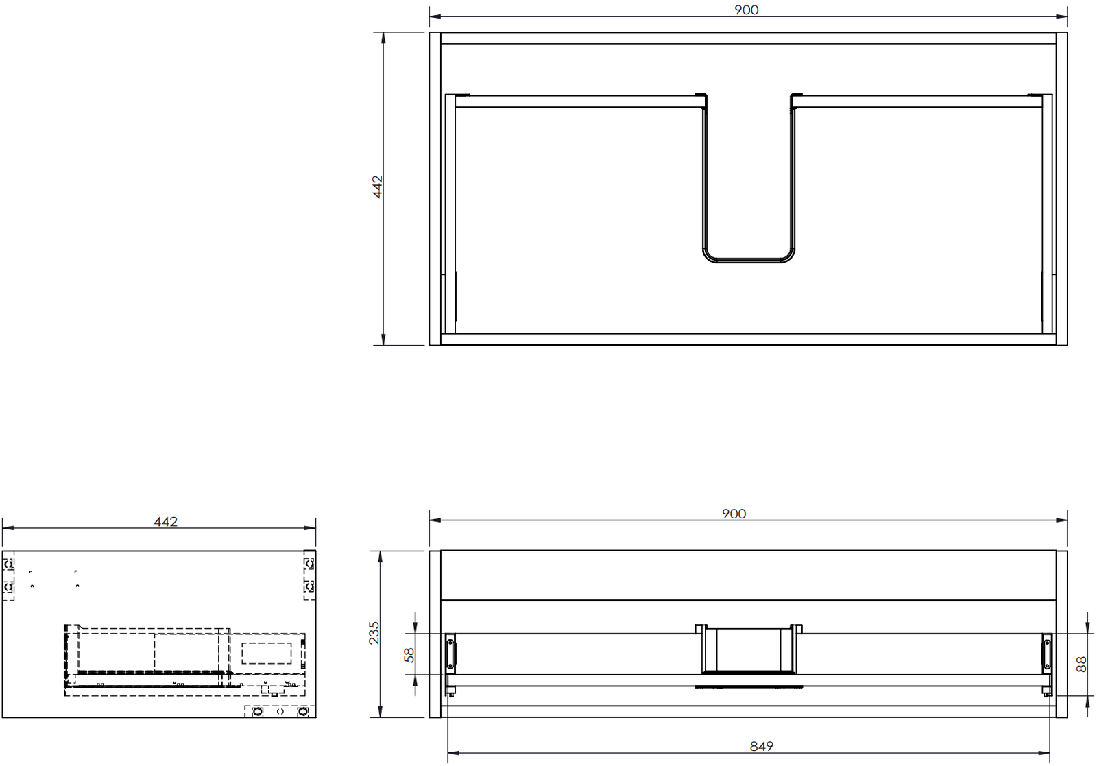 La découpe dans le tiroir est conçue de manière à accueillir le siphon, qui est nécessaire dans les installations de lavabo. Ainsi, le meuble peut être installé de manière pleinement fonctionnelle, sans devoir renoncer à l'espace du tiroir au profit de l'installation.