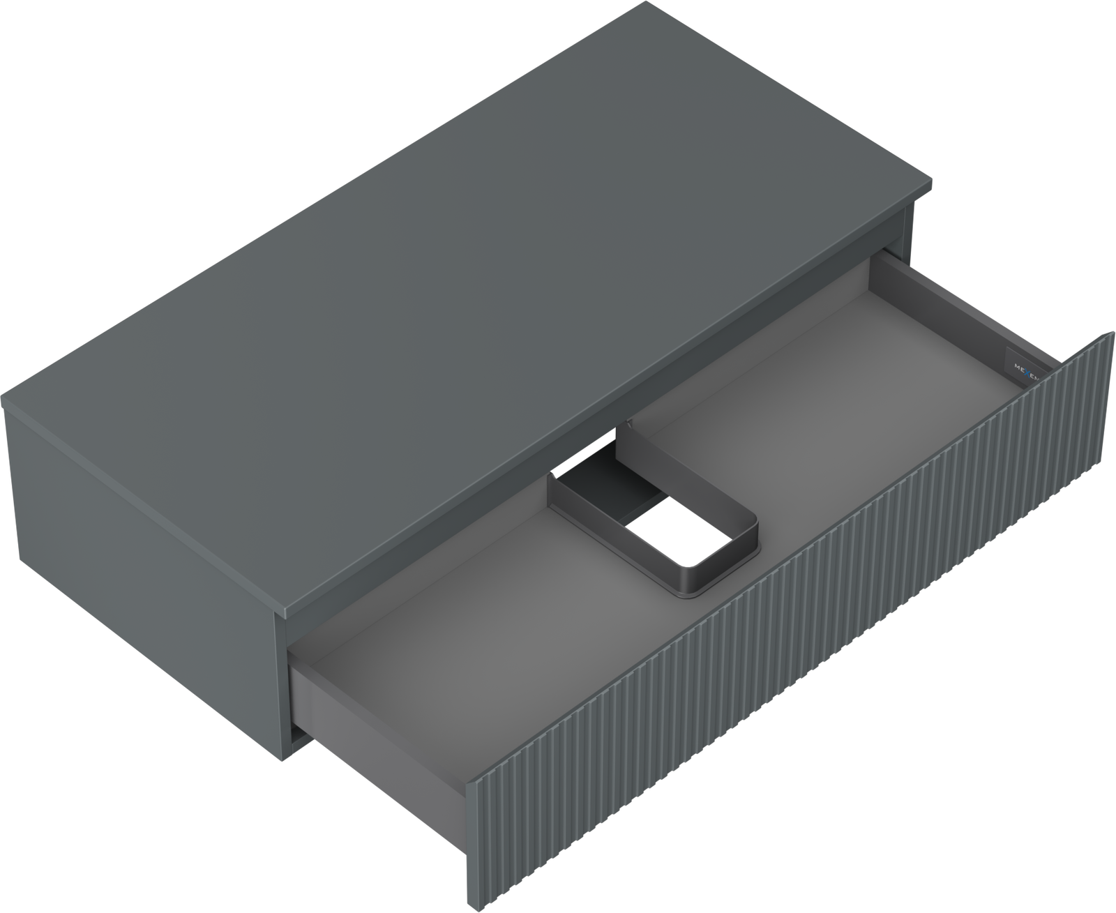 La découpe dans le tiroir est conçue de manière à accueillir le siphon, qui est nécessaire dans les installations de lavabo. Ainsi, le meuble peut être installé de manière pleinement fonctionnelle, sans devoir renoncer à l'espace du tiroir au profit de l'installation.