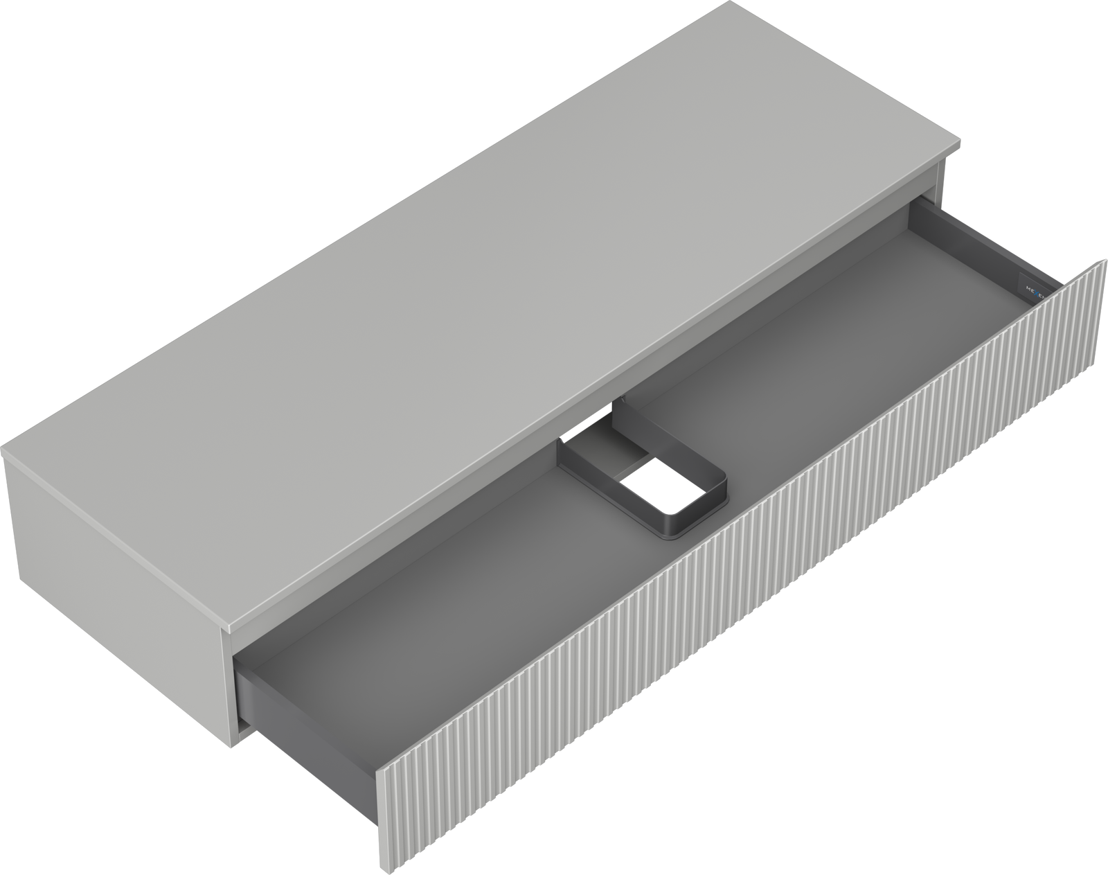 La découpe dans le tiroir est conçue de manière à accueillir le siphon, qui est nécessaire dans les installations de lavabo. Ainsi, le meuble peut être installé de manière pleinement fonctionnelle, sans devoir renoncer à l'espace du tiroir au profit de l'installation.