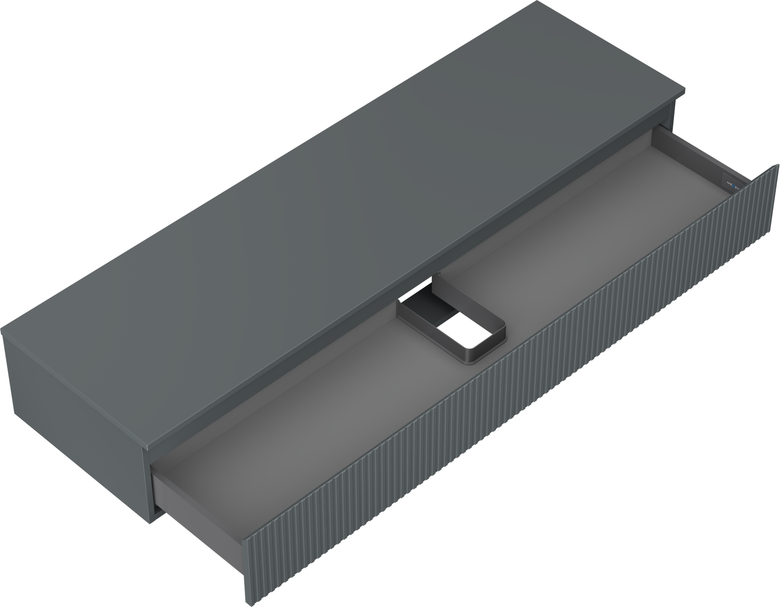La découpe dans le tiroir est conçue de manière à accueillir le siphon, qui est nécessaire dans les installations de lavabo. Ainsi, le meuble peut être installé de manière pleinement fonctionnelle, sans devoir renoncer à l'espace du tiroir au profit de l'installation.