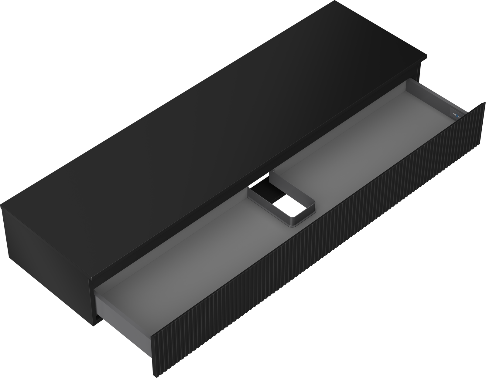 La découpe dans le tiroir est conçue de manière à accueillir le siphon, qui est nécessaire dans les installations de lavabo. Ainsi, le meuble peut être installé de manière pleinement fonctionnelle, sans devoir renoncer à l'espace du tiroir au profit de l'installation.