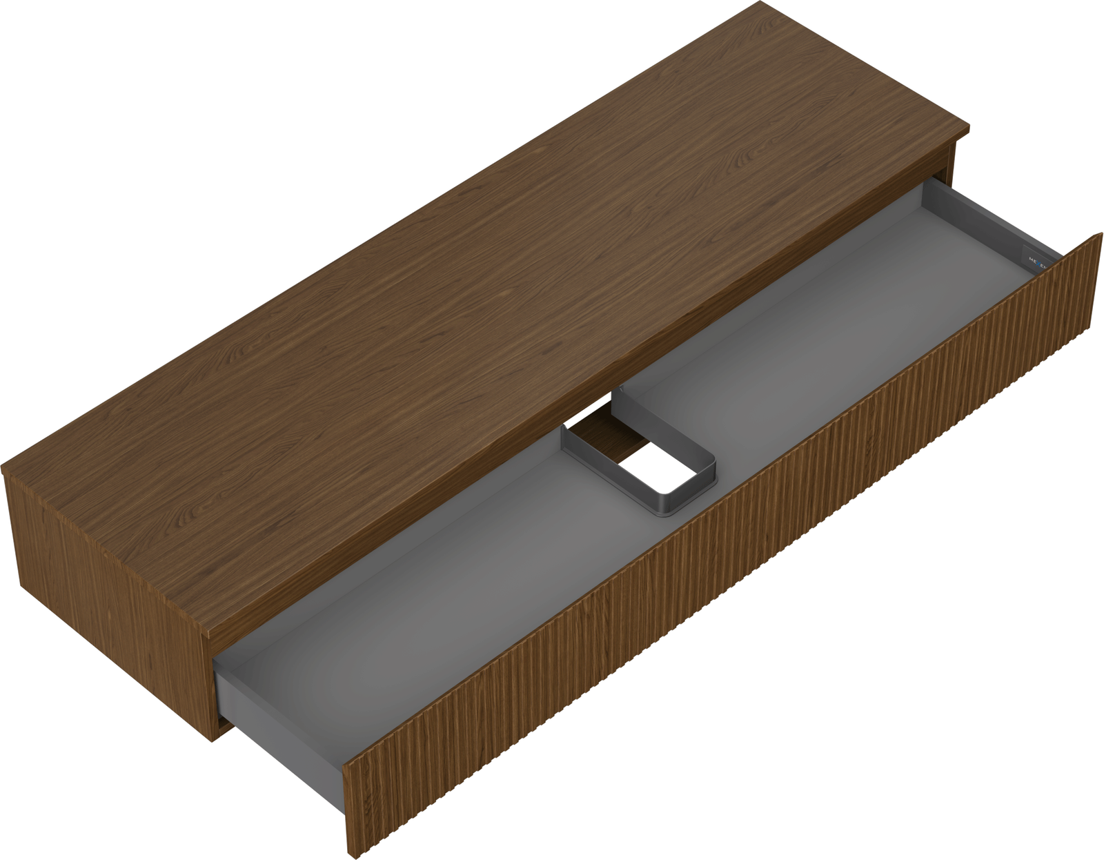 La découpe dans le tiroir est conçue de manière à accueillir le siphon, qui est nécessaire dans les installations de lavabo. Ainsi, le meuble peut être installé de manière pleinement fonctionnelle, sans devoir renoncer à l'espace du tiroir au profit de l'installation.