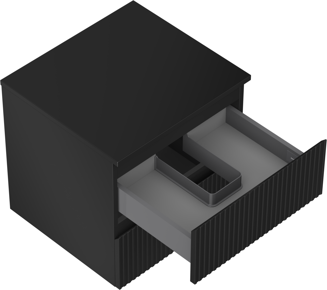 La découpe dans le tiroir est conçue de manière à accueillir le siphon, qui est nécessaire dans les installations de lavabo. Ainsi, le meuble peut être installé de manière pleinement fonctionnelle, sans devoir renoncer à l'espace du tiroir au profit de l'installation.