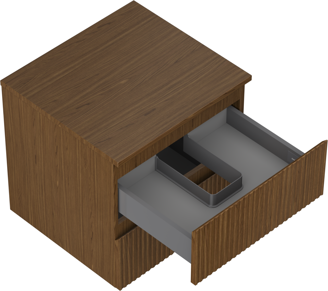 La découpe dans le tiroir est conçue de manière à accueillir le siphon, qui est nécessaire dans les installations de lavabo. Ainsi, le meuble peut être installé de manière pleinement fonctionnelle, sans devoir renoncer à l'espace du tiroir au profit de l'installation.