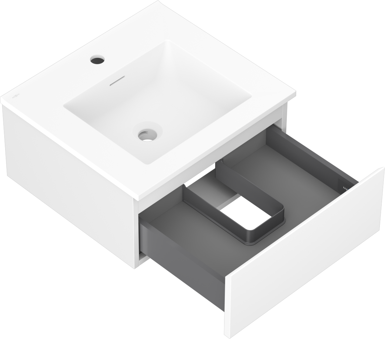 La découpe dans le tiroir est conçue de manière à accueillir le siphon, qui est nécessaire dans les installations de lavabo. Ainsi, le meuble peut être installé de manière pleinement fonctionnelle, sans devoir renoncer à l'espace du tiroir au profit de l'installation.