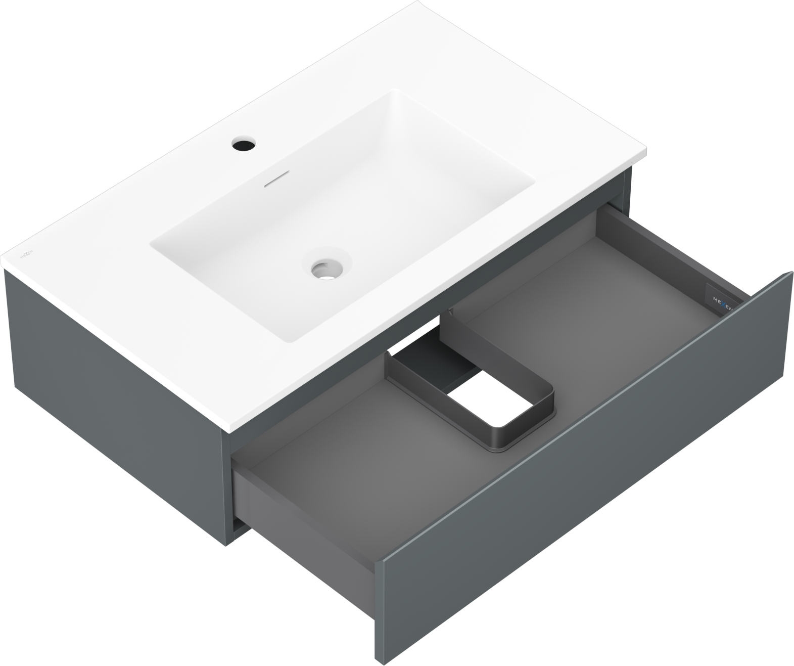 La découpe dans le tiroir est conçue de manière à accueillir le siphon, qui est nécessaire dans les installations de lavabo. Ainsi, le meuble peut être installé de manière pleinement fonctionnelle, sans devoir renoncer à l'espace du tiroir au profit de l'installation.