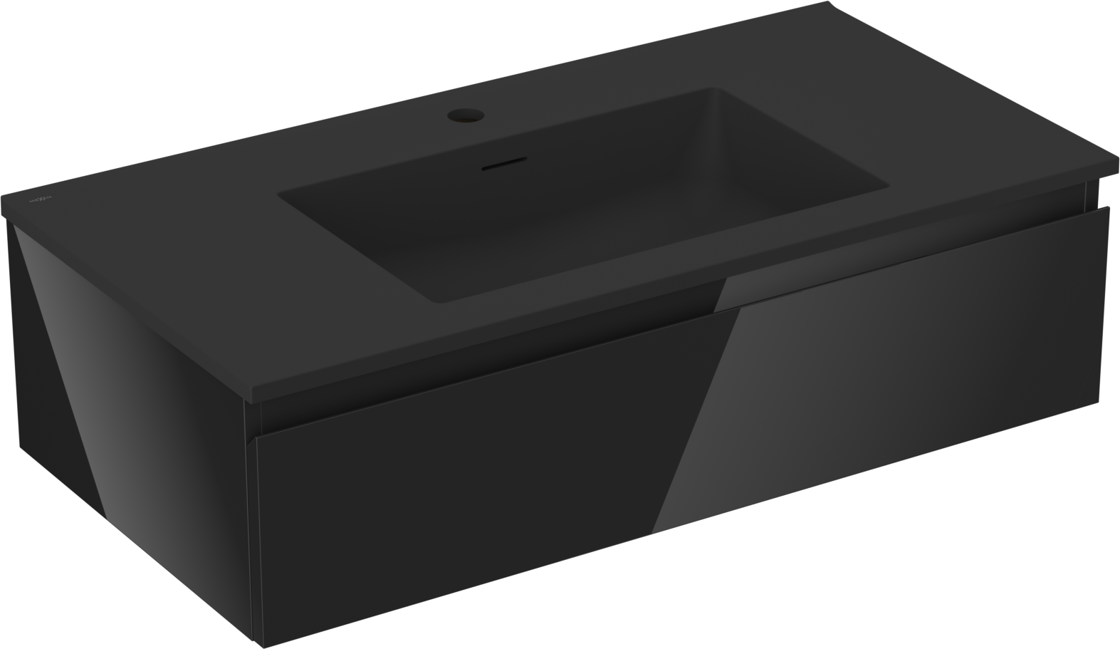 Mexen Orio meuble de salle de bain 90 cm avec lavabo Otis, 1 tiroir, noir brillant/noir mat - 91A10-09023-1-BF70-W18M71