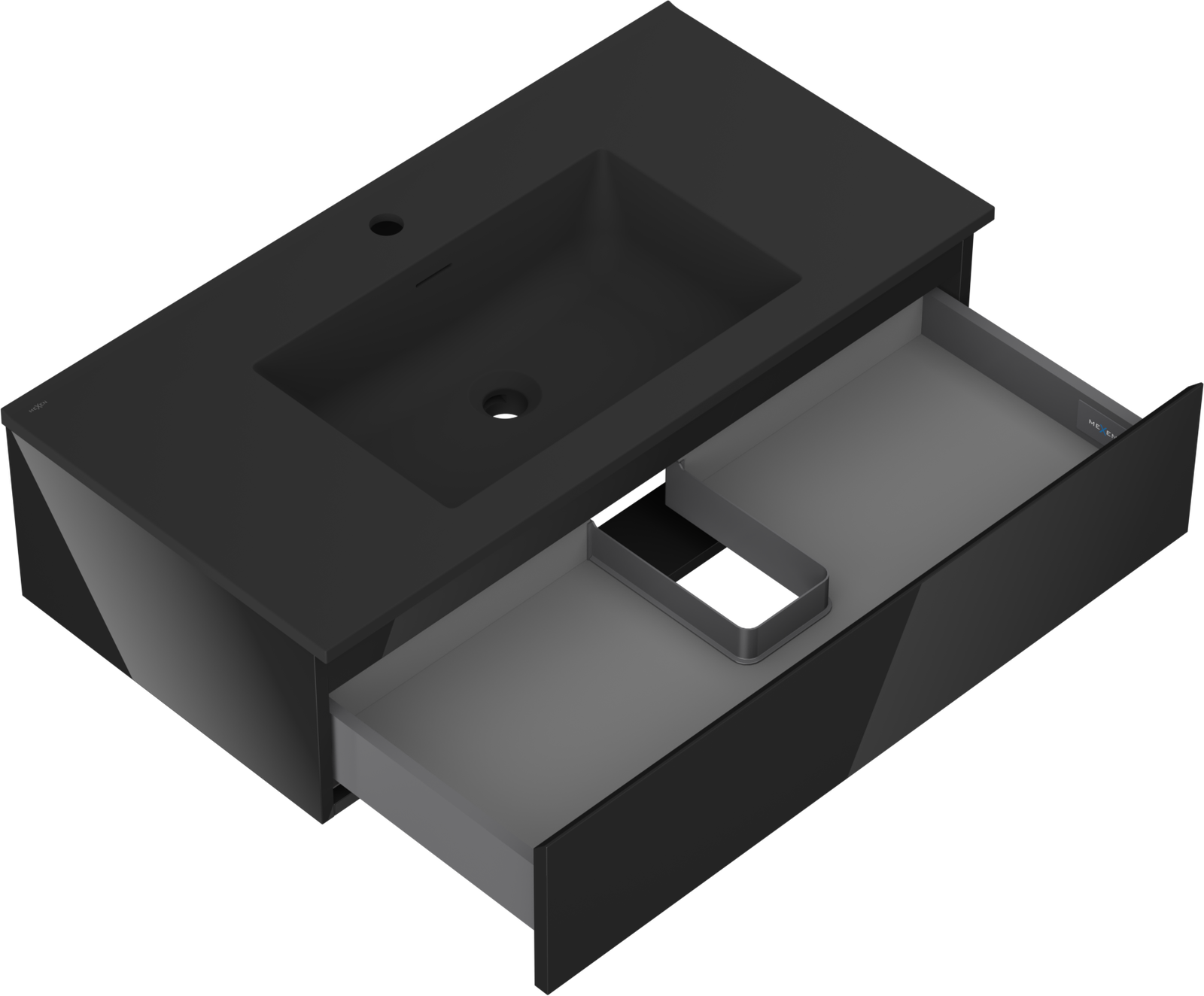 La découpe dans le tiroir est conçue de manière à accueillir le siphon, qui est nécessaire dans les installations de lavabo. Ainsi, le meuble peut être installé de manière pleinement fonctionnelle, sans devoir renoncer à l'espace du tiroir au profit de l'installation.
