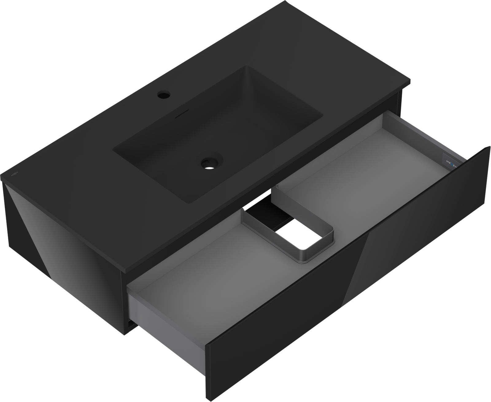 La découpe dans le tiroir est conçue de manière à accueillir le siphon, qui est nécessaire dans les installations de lavabo. Ainsi, le meuble peut être installé de manière pleinement fonctionnelle, sans devoir renoncer à l'espace du tiroir au profit de l'installation.