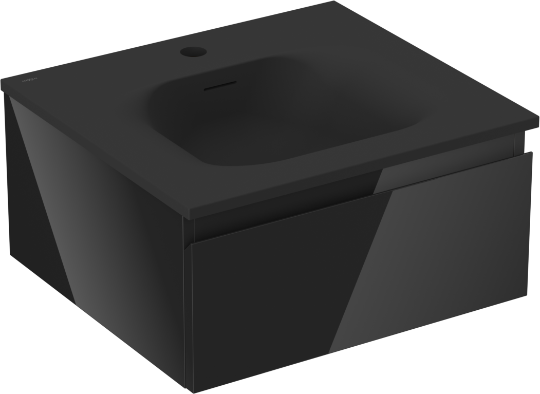 Mexen Orio armoire de salle de bain 50 cm avec lavabo Vela, 1 tiroir, noir brillant/noir mat - 91A10-05023-1-BF70-W23M71