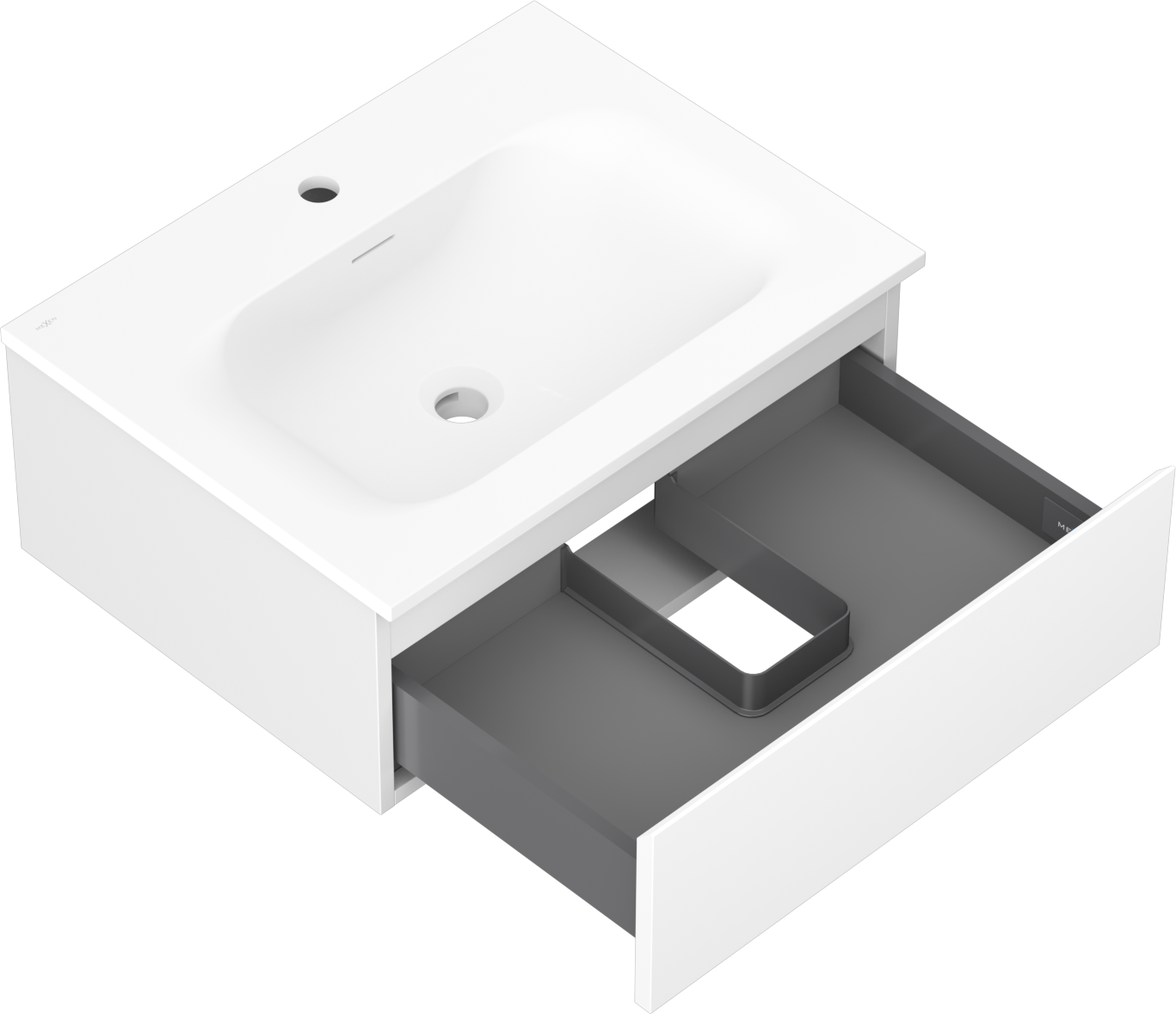La découpe dans le tiroir est conçue de manière à accueillir le siphon, qui est nécessaire dans les installations de lavabo. Ainsi, le meuble peut être installé de manière pleinement fonctionnelle, sans devoir renoncer à l'espace du tiroir au profit de l'installation.
