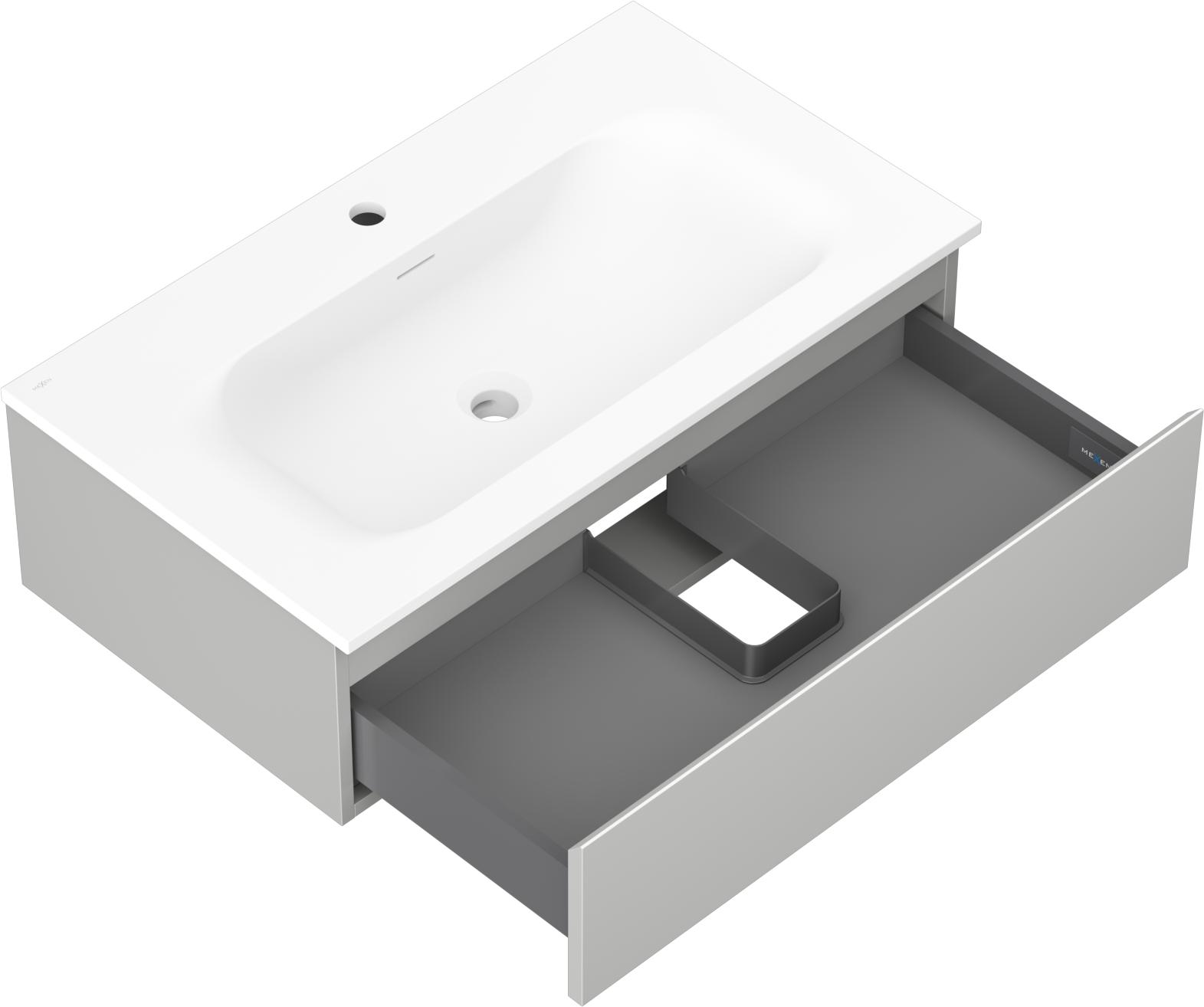 La découpe dans le tiroir est conçue de manière à accueillir le siphon, qui est nécessaire dans les installations de lavabo. Ainsi, le meuble peut être installé de manière pleinement fonctionnelle, sans devoir renoncer à l'espace du tiroir au profit de l'installation.