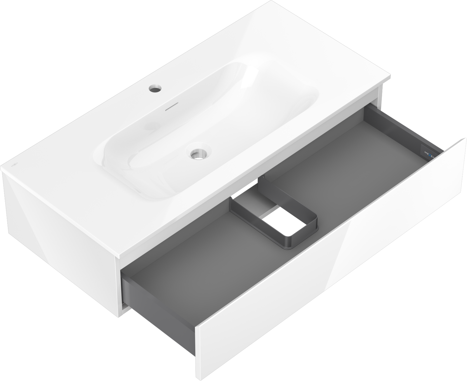 Mexen Orio meuble de salle de bains 100 cm avec lavabo Vela, 1 tiroir, blanc brillant - 91A10-10023-1-BF00-W23M00