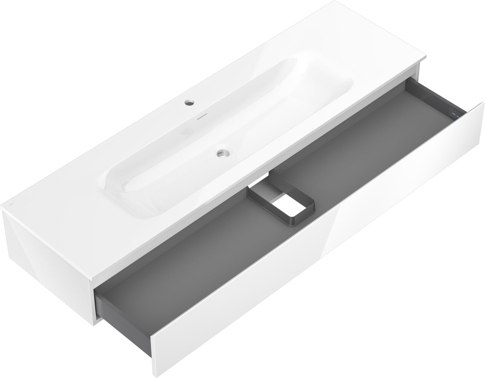 La découpe du tiroir est conçue pour accueillir un siphon, indispensable pour l'installation d'un lavabo. Cela permet d'installer le meuble de manière entièrement fonctionnelle, sans avoir à occuper d'espace dans le tiroir.