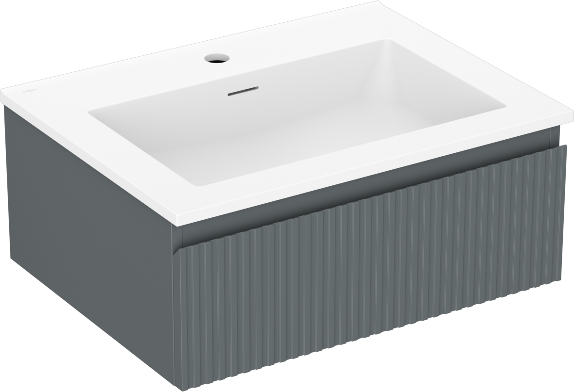Mexen Rivel meuble de salle de bains 60 cm avec lavabo Otis, 1 tiroir, rainuré, graphite mat/blanc mat