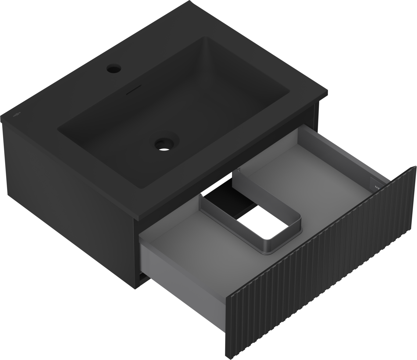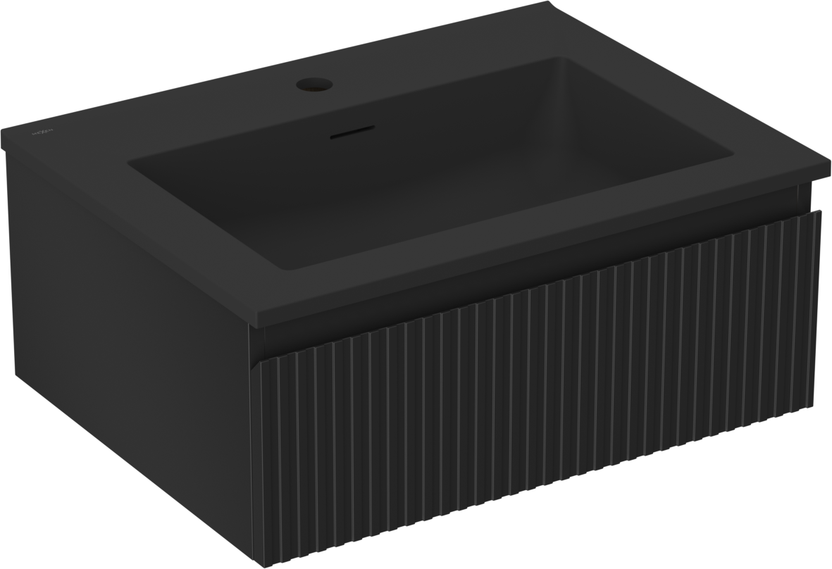 Mexen Rivel armoire de salle de bain 60 cm avec lavabo Otis, 1 tiroir, cannelé, noir mat - 91A20-06023-1-BF71-W18M71
