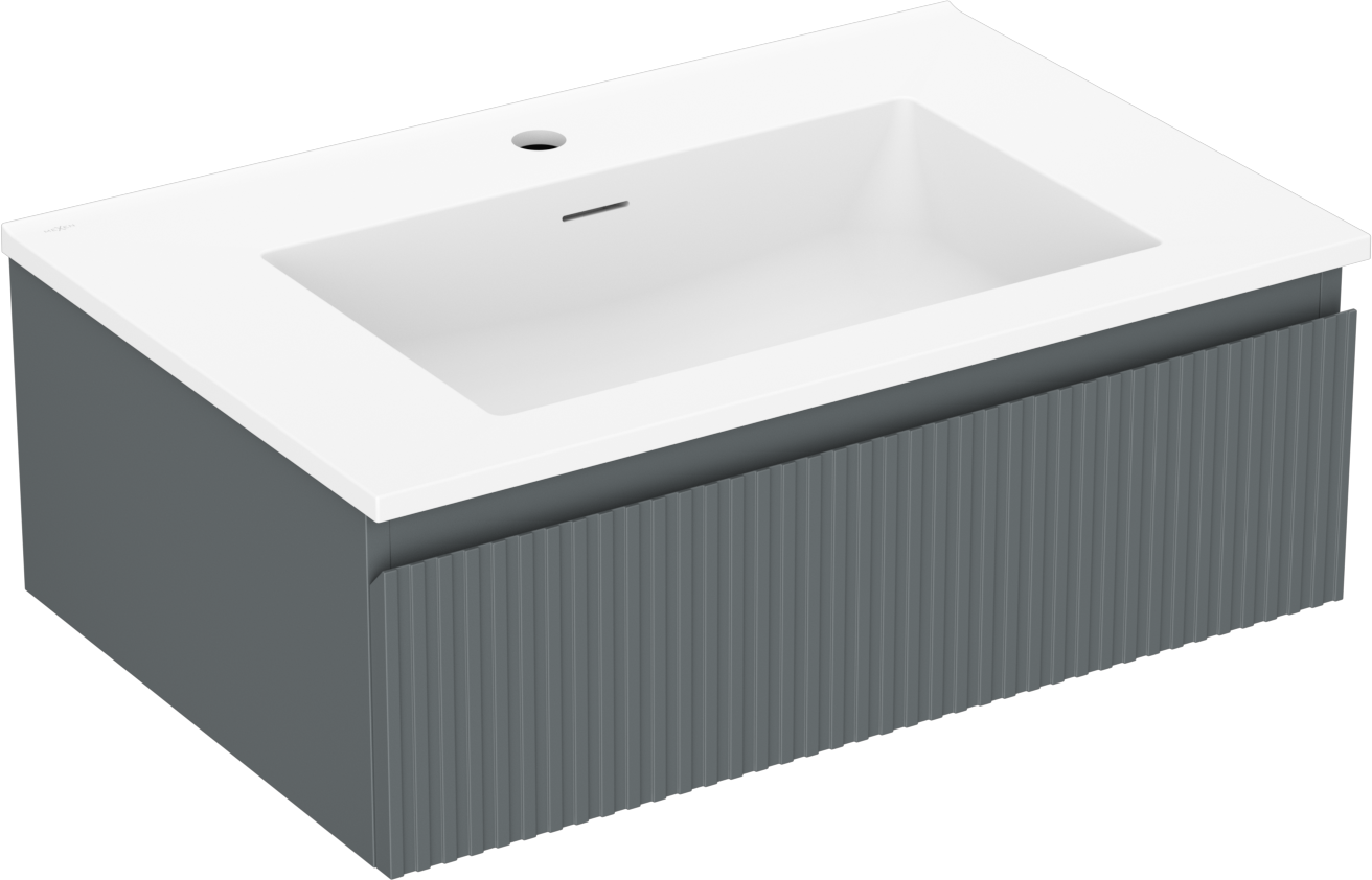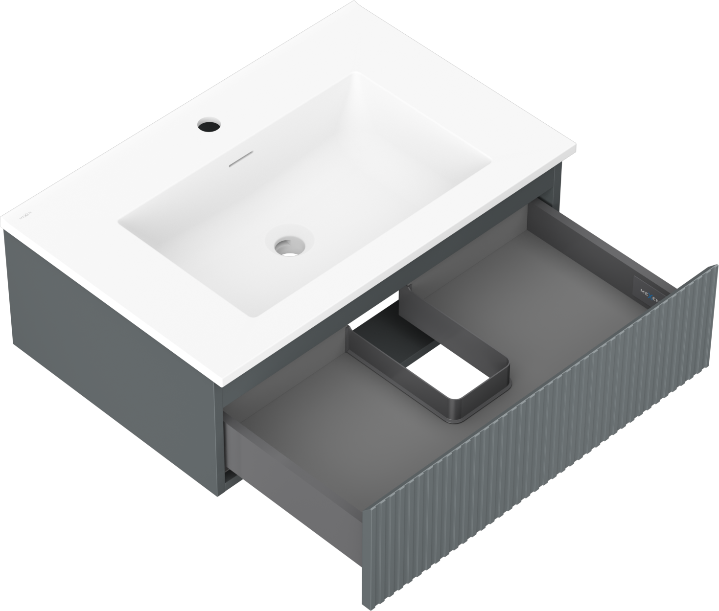 Mexen Rivel armoire de salle de bain 70 cm avec lavabo Otis, 1 tiroir, rainurée, graphite mat/blanc mat
