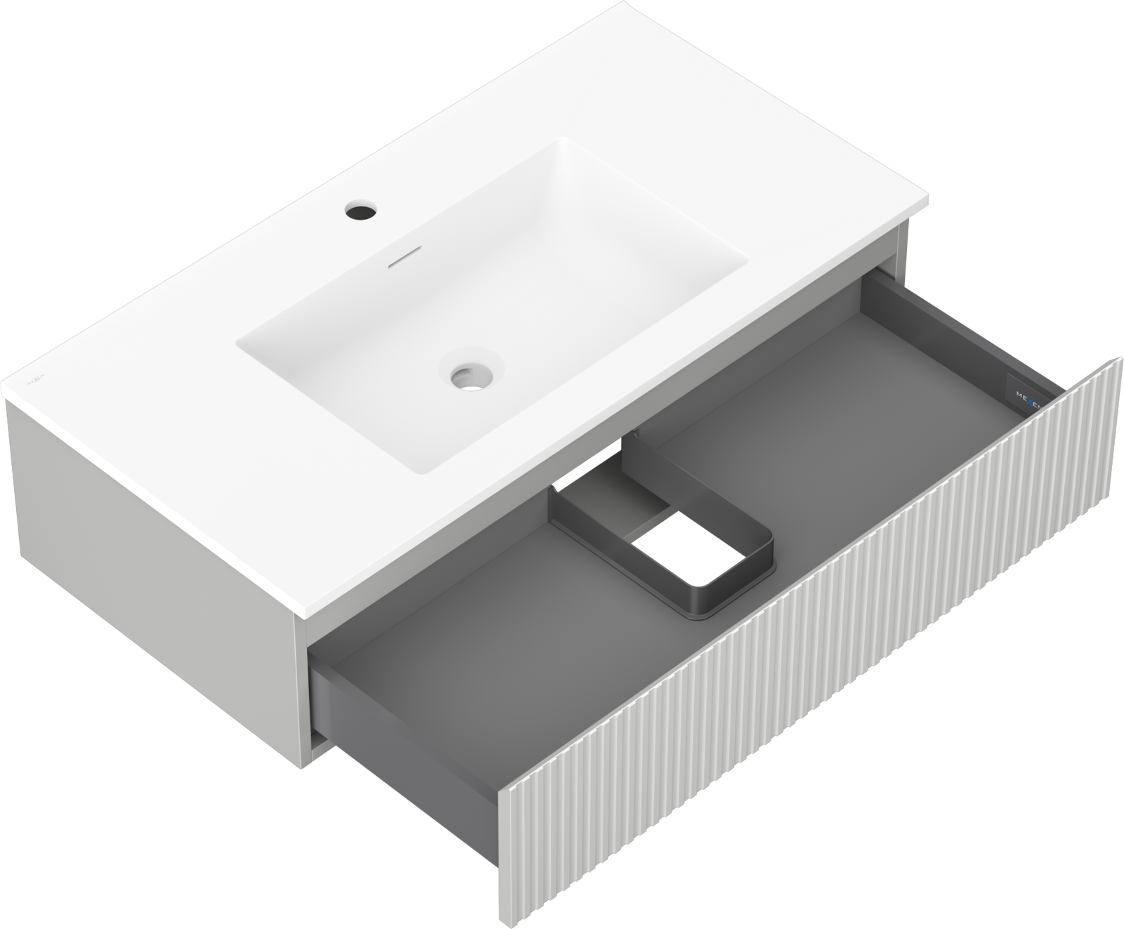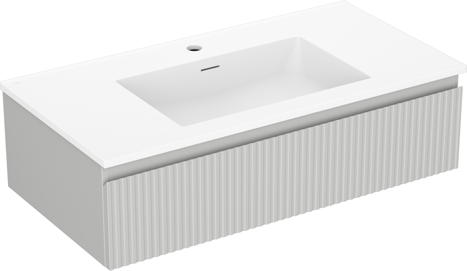Mexen Rivel armoire de salle de bain 90 cm avec lavabo Otis, 1 tiroir, rainuré, gris mat/blanc mat - 91A20-09023-1-BF62-W18M01