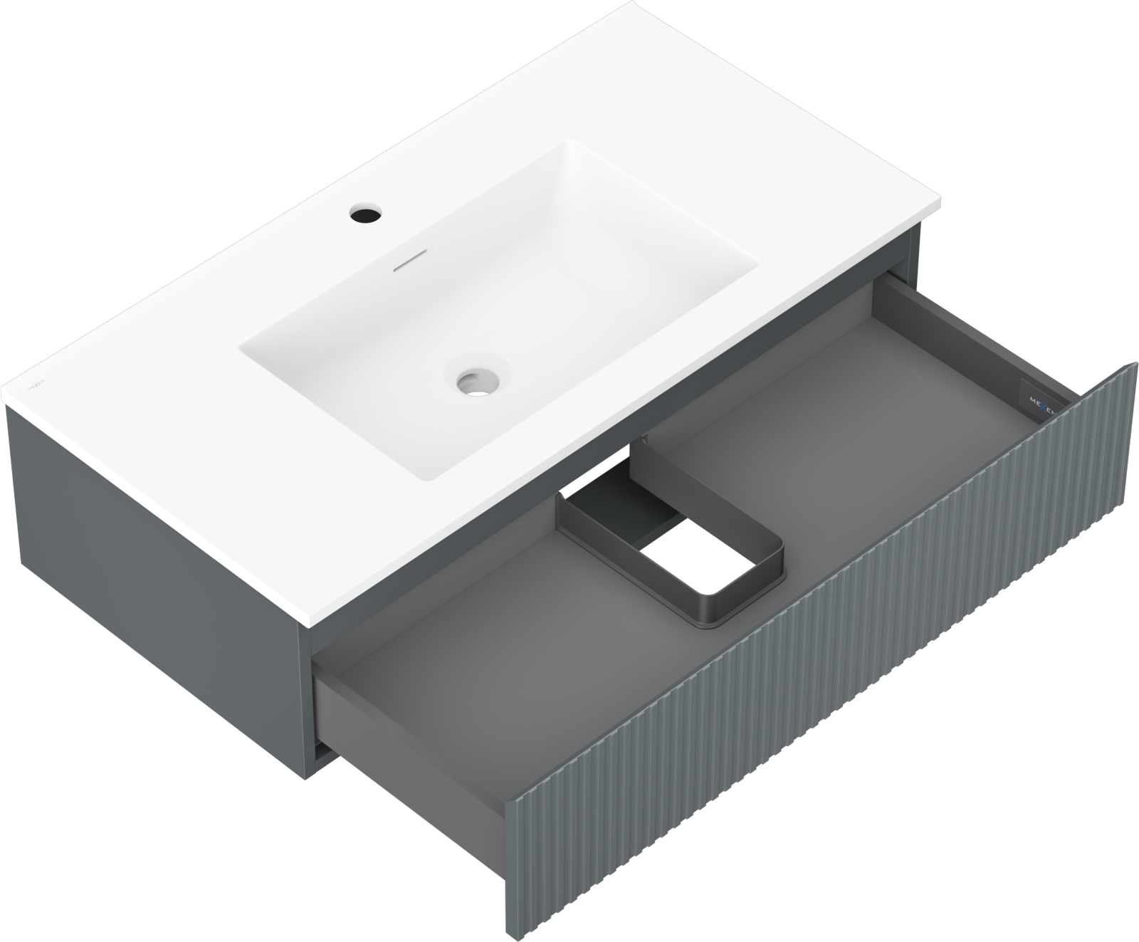 Mexen Rivel armoire de salle de bain 90 cm avec lavabo Otis, 1 tiroir, rainurée, graphite mat/blanc mat