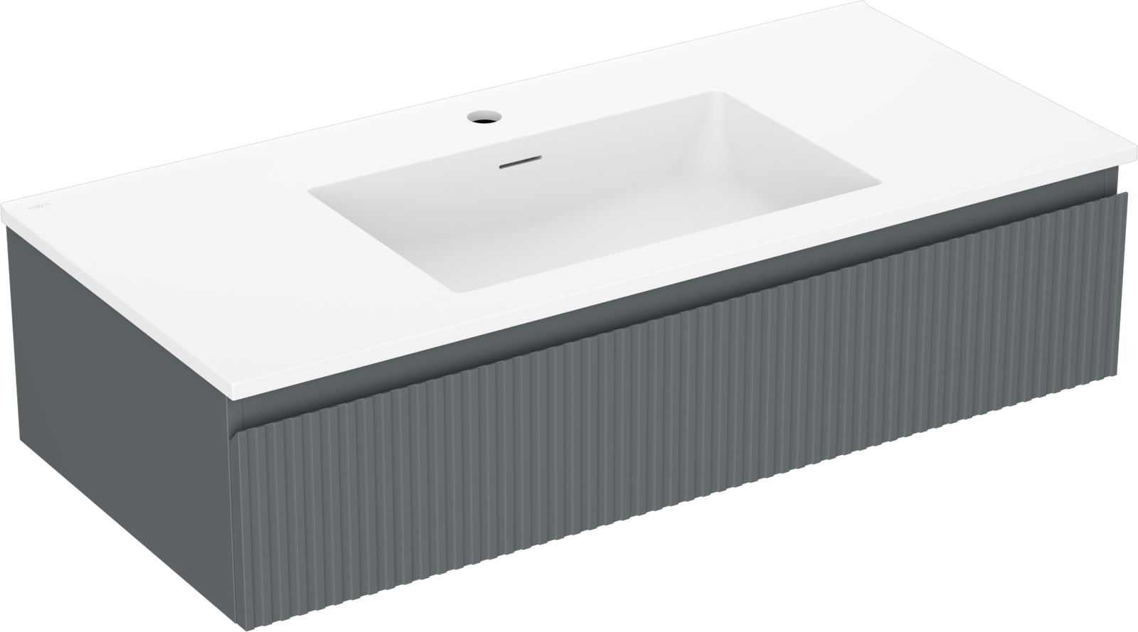 Mexen Rivel meuble de salle de bains 100 cm avec lavabo Otis, 1 tiroir, rainuré, graphite mat/blanc mat