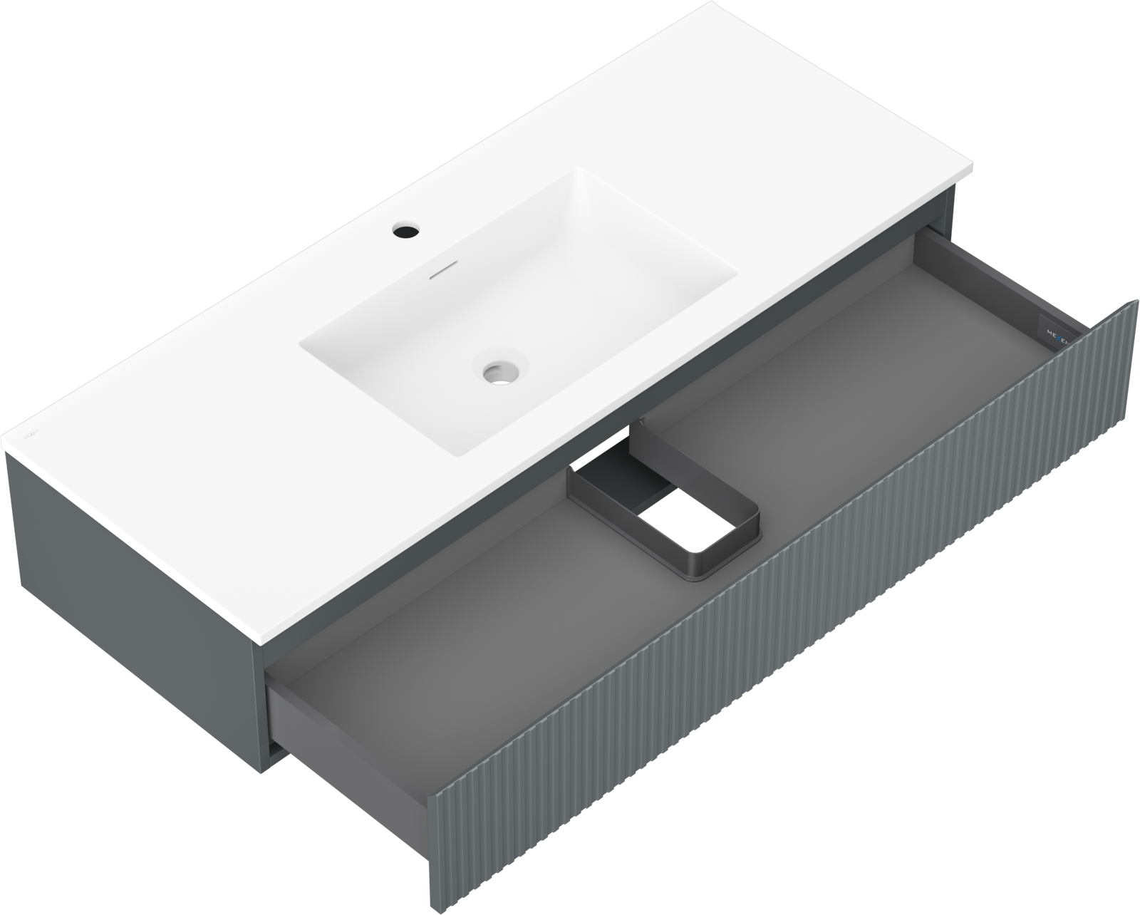 La découpe dans le tiroir est conçue de manière à accueillir le siphon, qui est nécessaire dans les installations de lavabo. Ainsi, le meuble peut être installé de manière pleinement fonctionnelle, sans devoir renoncer à l'espace du tiroir au profit de l'installation.