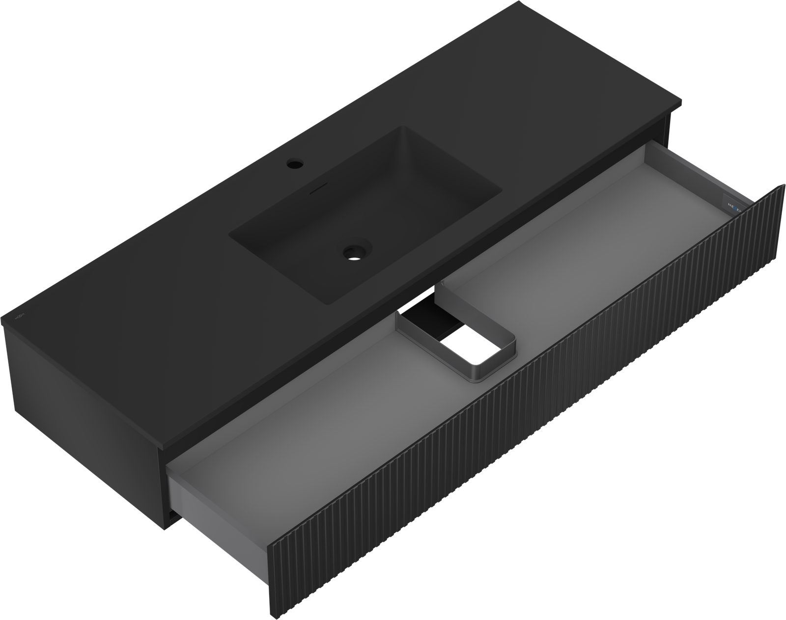 Mexen Rivel meuble de salle de bain 140 cm avec lave-mains Otis, 1 tiroir, rainuré, noir mat - 91A20-14023-1-BF71-W18M71